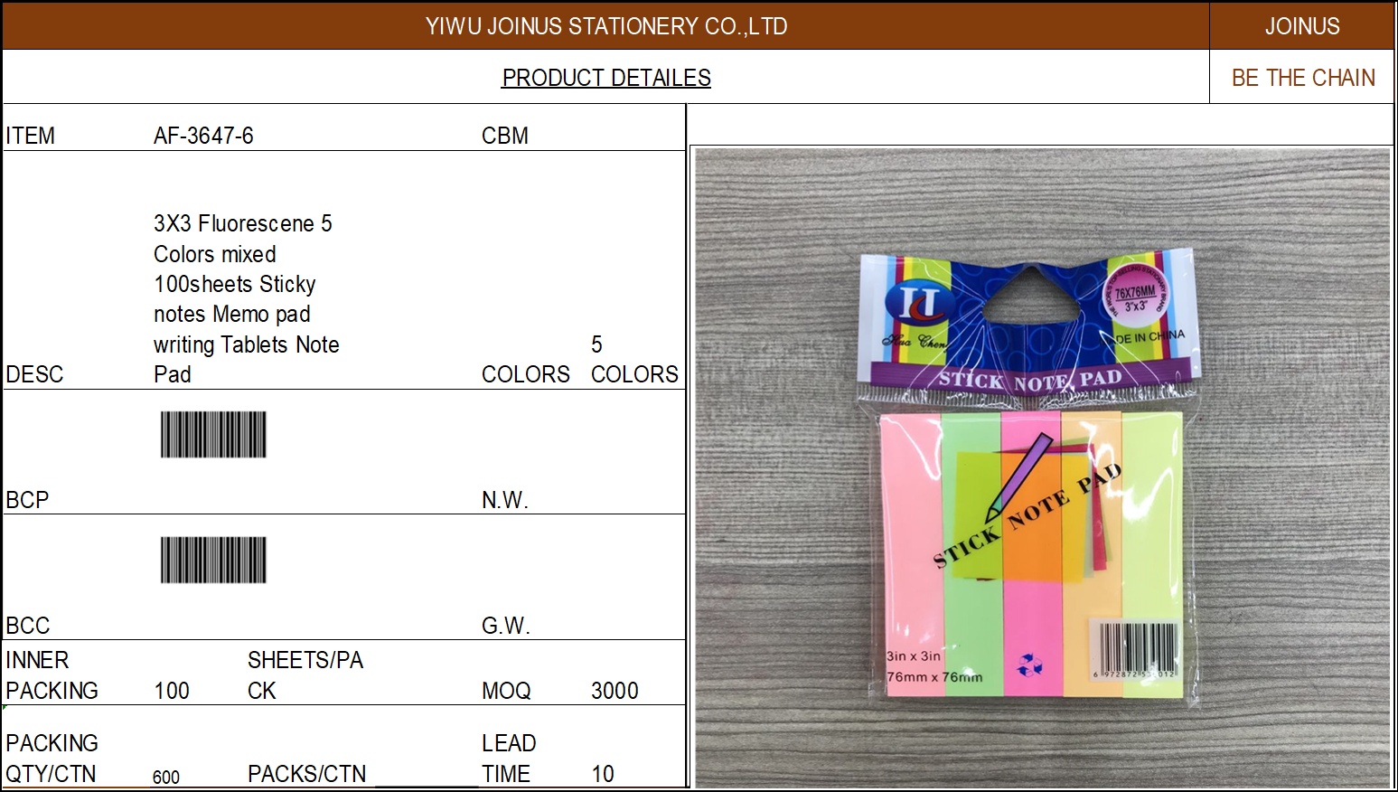 About Product:100张3X3五条荧光自粘便利贴彩条告示贴便签留言本 3X3 Fluorescene 5 Colors mixed 100sheets Sticky notes Memo pad writing Tablets Note Pad AF-3647-6