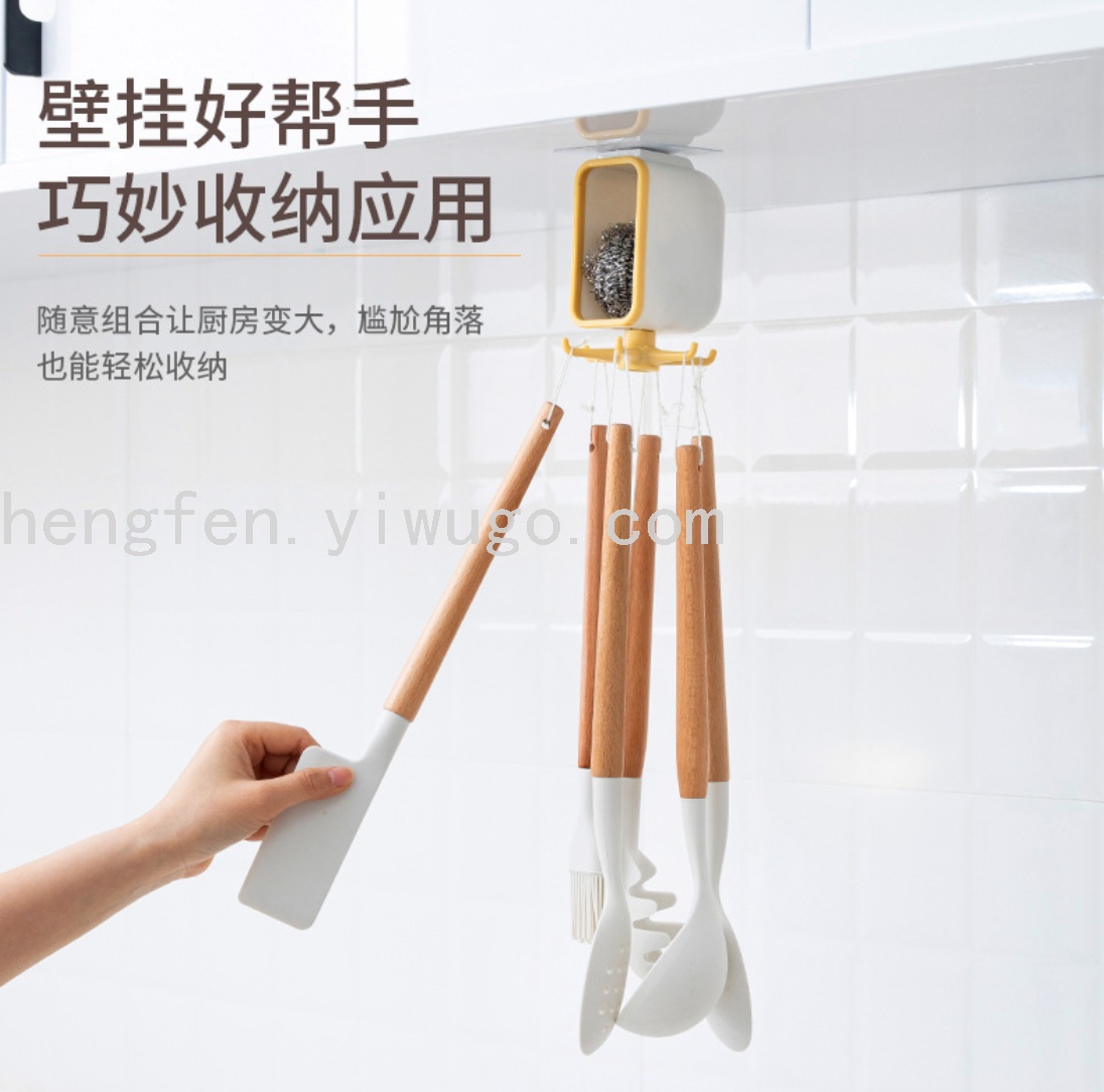 Creative Storage Box Rotating Hook Kitchen Wall Pan Spoon Rack
