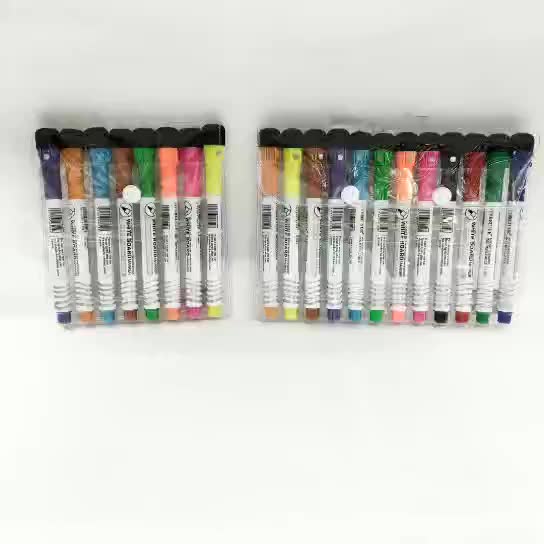 [Zi Yi Stationery] is located at Shop 22103, 1st Floor, Street 11, Gate 58, Area H, Yiwu International Commerce City. We specialize in a variety of pen products, including fluorescent pens, marker pens, whiteboard pens, ballpoint pens, watercolor pens, gel pens, and various novel and creative shaped pens. Our product range is extensive, and the platform cannot fully display them. If you have any needs, you can add me on WeChat for consultation: 18966022208. Welcome to the store to view samples and place orders. Product number: G-208, this is a magnetic, erasable, and cotton-padded whiteboard pen with a cartoon design. It comes in 8 colors and 12 colors, and is packaged in PVC bags. There are 1,728 pieces in one piece.