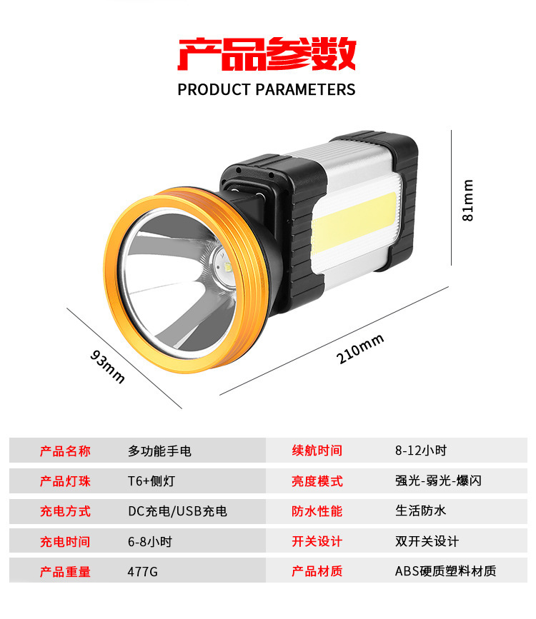 Cross-Border New Arrival P50 Flashlight Super Bright Portable Work Lights Rechargeable Searchlight