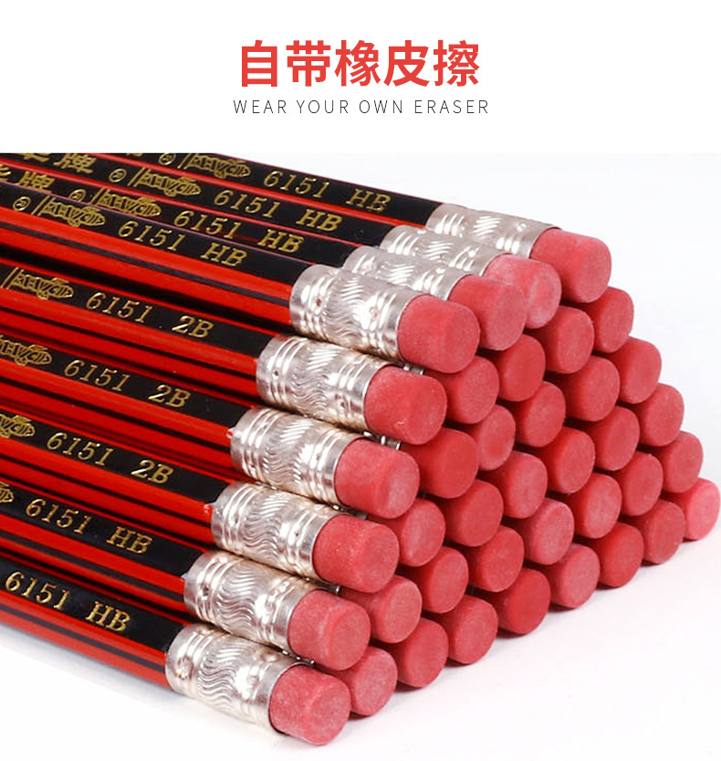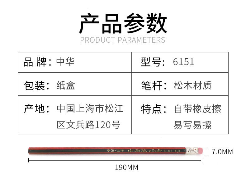 Shanghai Zhonghua 6151 Strips Eraser Pencil HB Pencil Student Pencil Writing Pencil