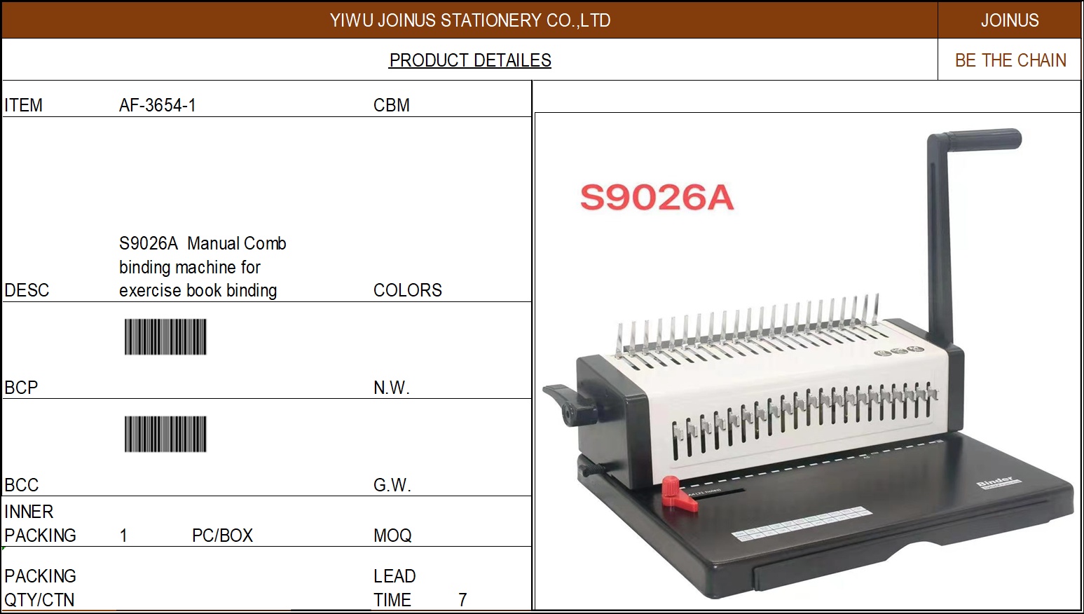 S9026A Manual Comb binding machine for exercise book binding AF-3654-1