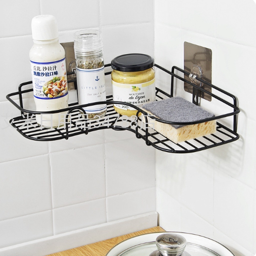 Bathroom Punch-Free Storage Rack Corner Wall-Mounted Iron Tripod Kitchen Seasoning Storage Rack Bathroom Corner Holder