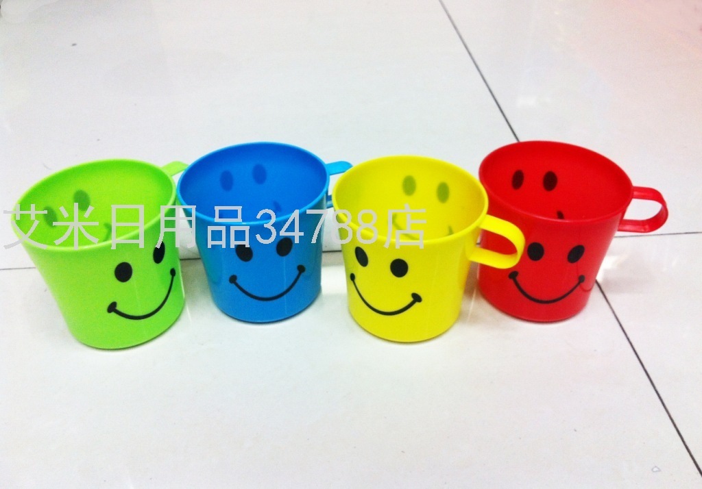 Plastic Cup with Handle Smiley Face Gargle Cup Drinking Cup Big Mouth Smiley Face Gargle Cup Toddler Drinking Cup 4003