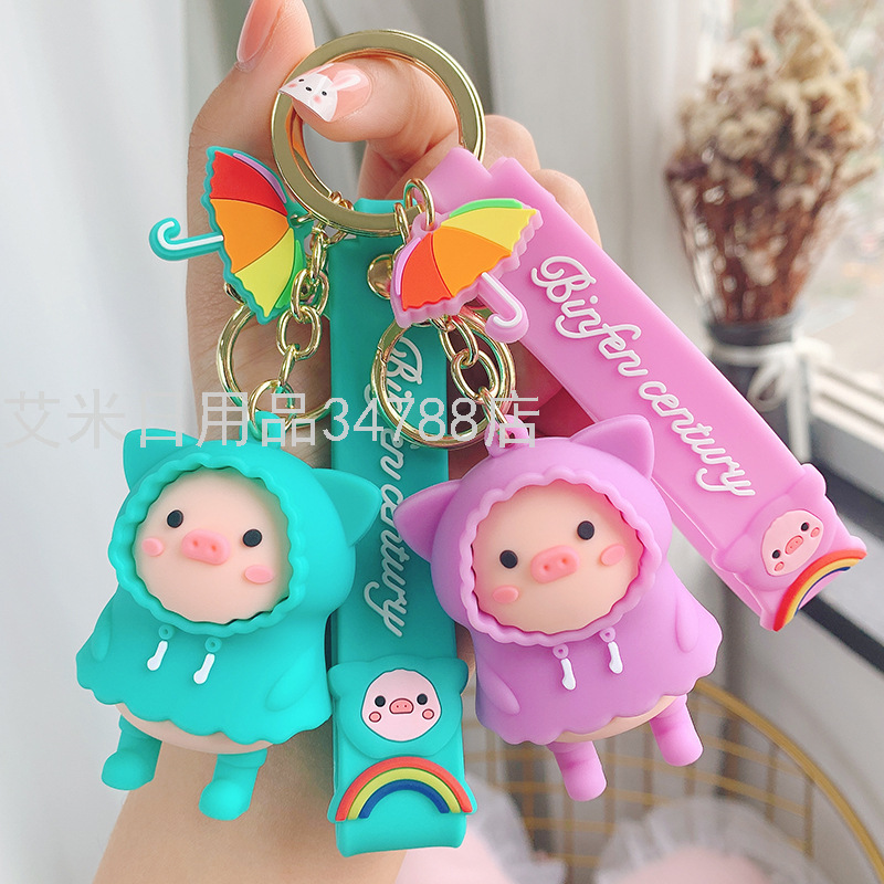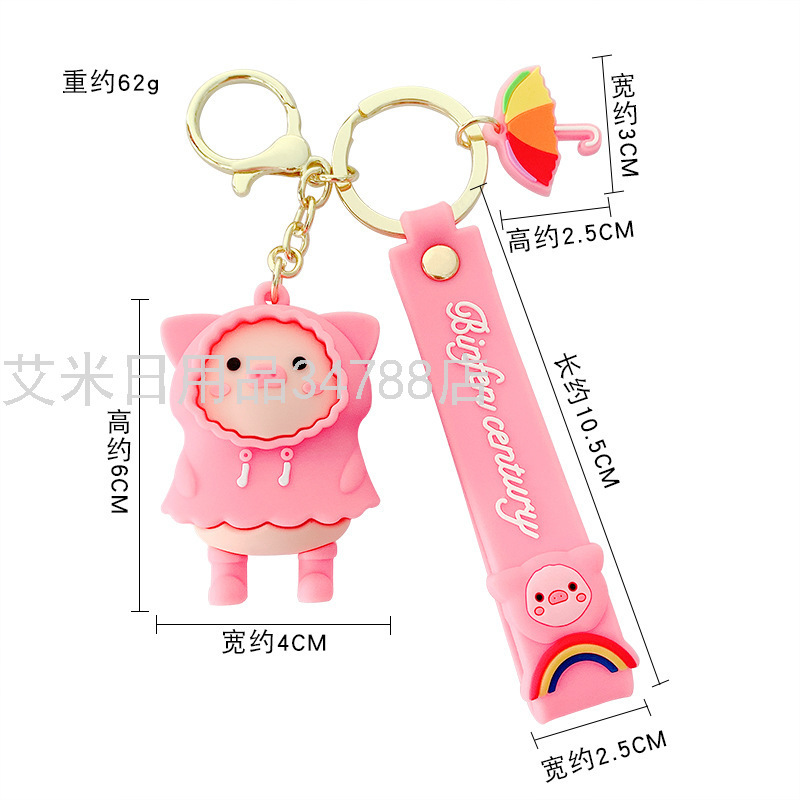 Raincoat Pig Keychain Female Cute Personality Pig Automobile Hanging Ornament Male Couple Schoolbag Ornaments YYZYSK-01