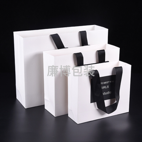 Paper Bag Custom Logo White Card Gilding Color Printing Gift Bag Shopping Hand Carrying Kraft Rivet Garment Portable Paper Bag