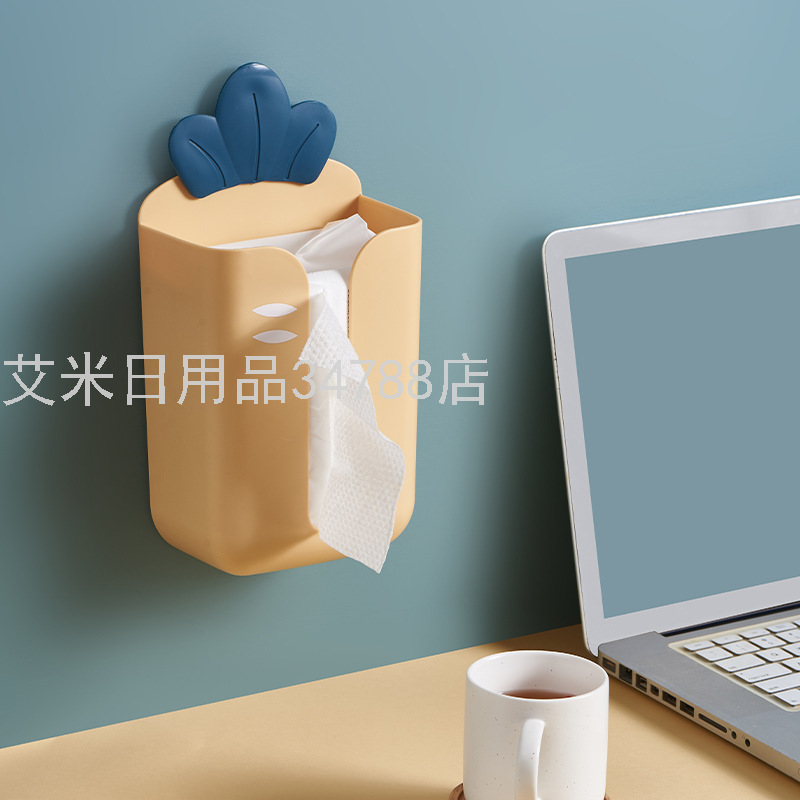 9006 Household Wall-Mounted Tissue Box Seamless Punch-Free Cute Radish Paper Extraction Box Storage Box