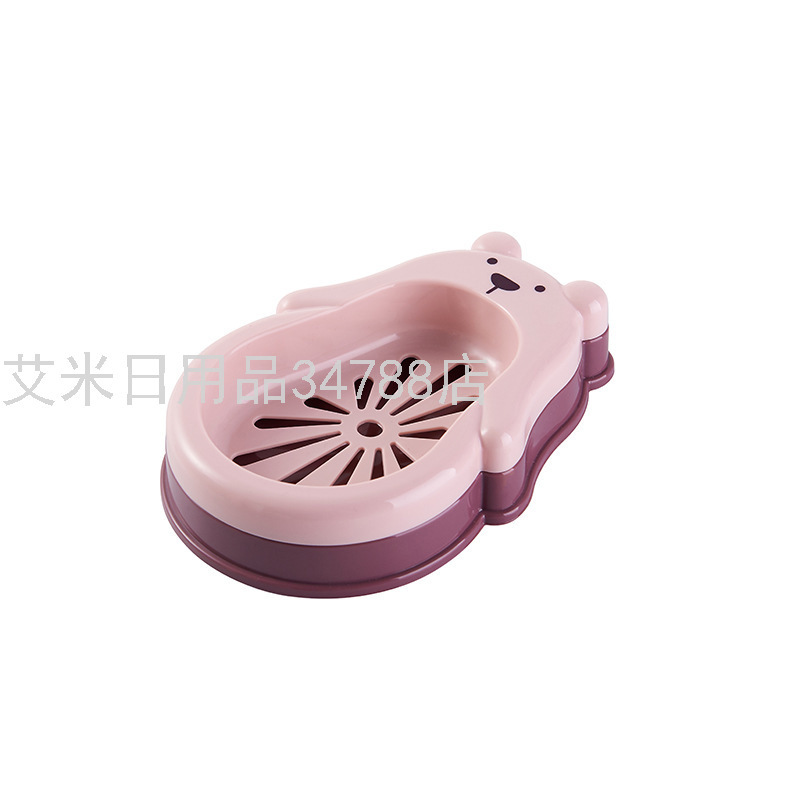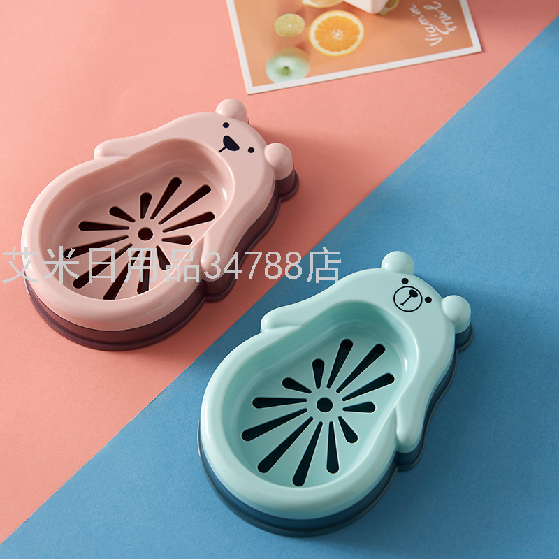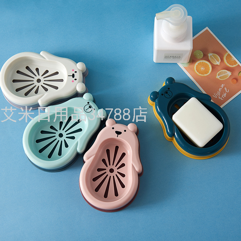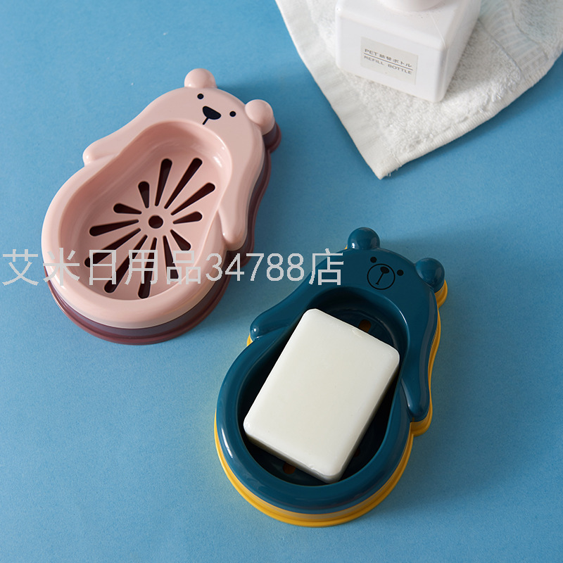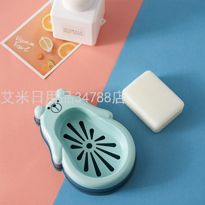 8949 New Bear Double Layer Drain Soap Box Bathroom Bathroom Soap Box Cute Cartoon Soap Holder with Lid