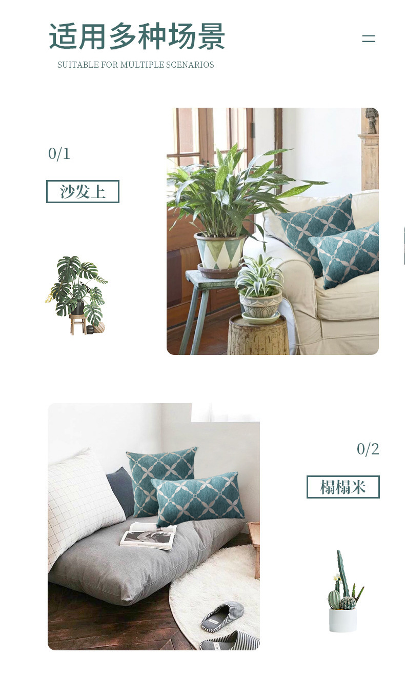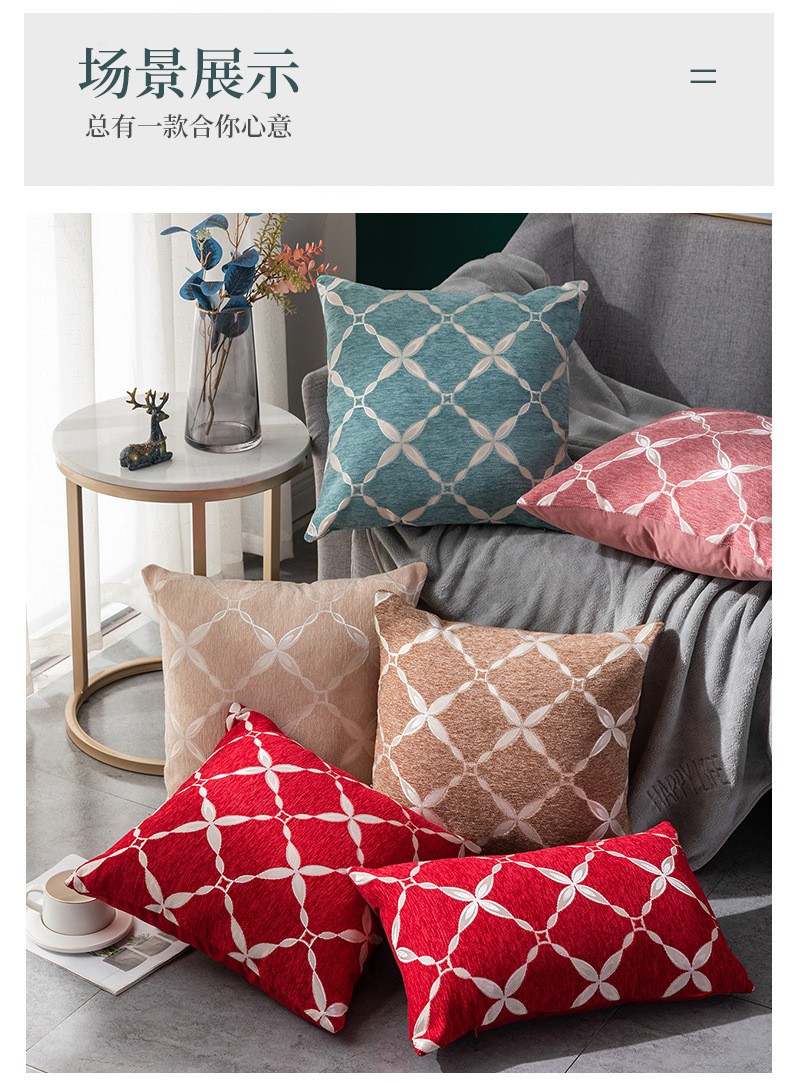 Chenille Woven Large Rhombus Plaid Pillow Cover Bedside Backrest Pillow Simple Sofa Pillow