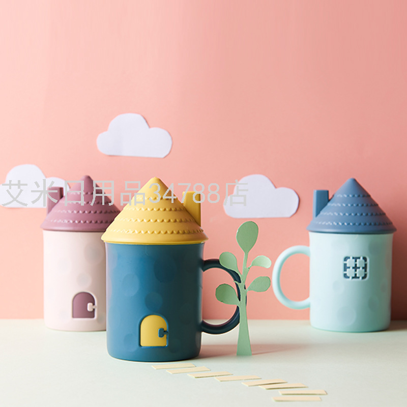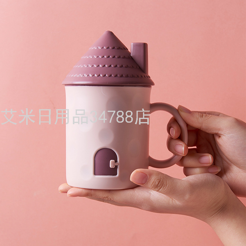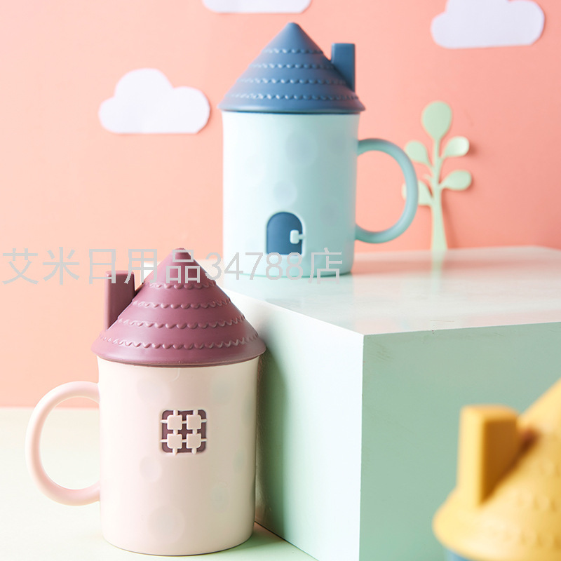 8921 Creative Small House Mug Children Cute Cartoon Anti-Fall Plastic Drinking Cup with Lid Milk Cup