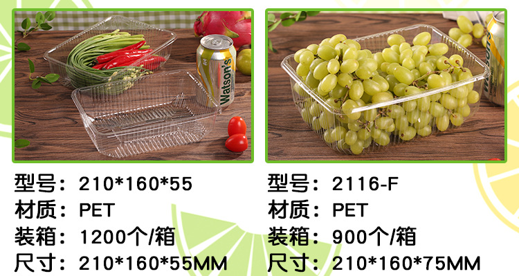 fruit container disposable tray transparent box plastic box fresh vegetable box rectangular box roast duck to-go box 1813