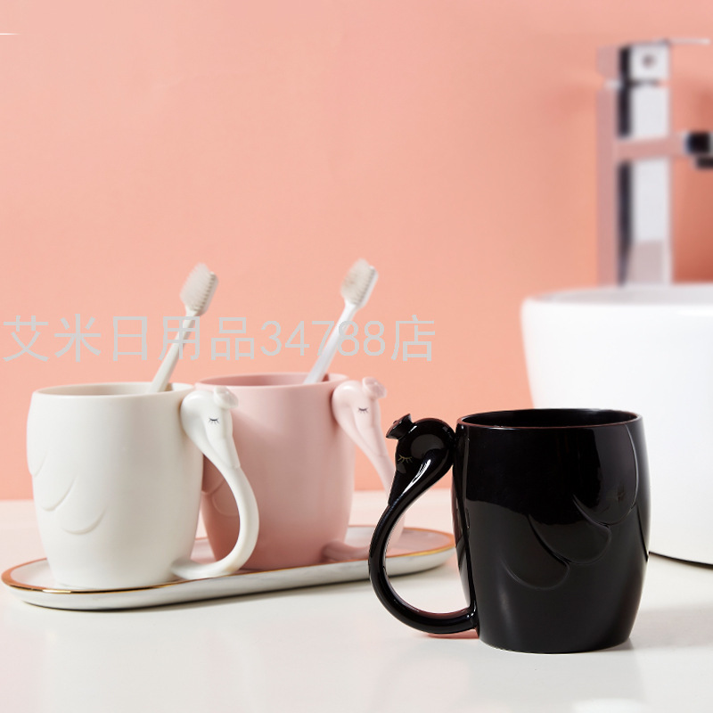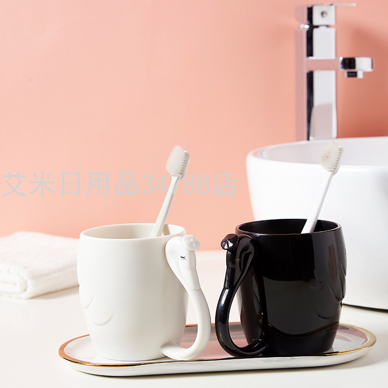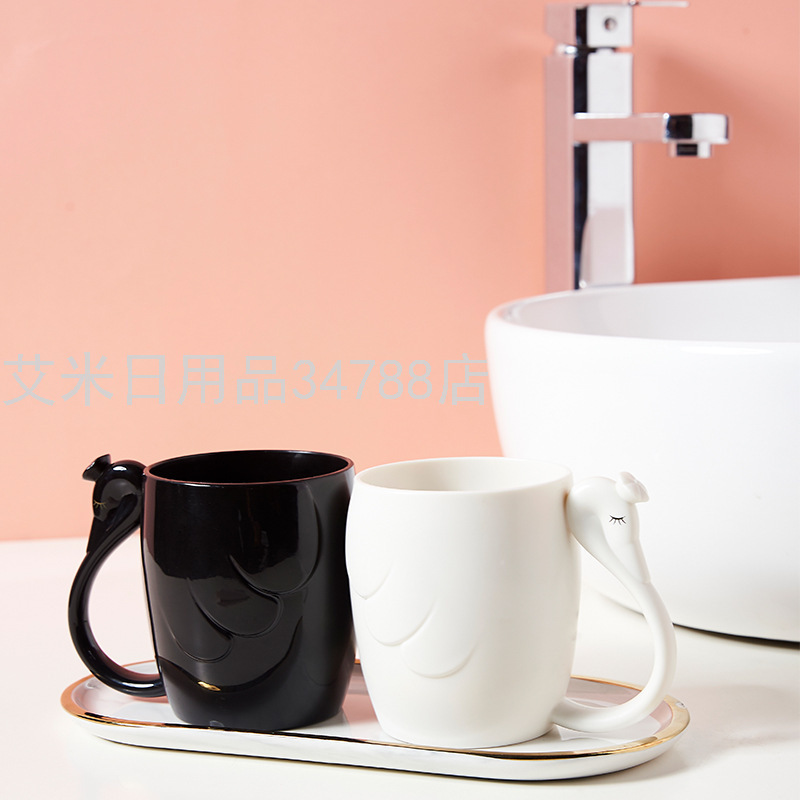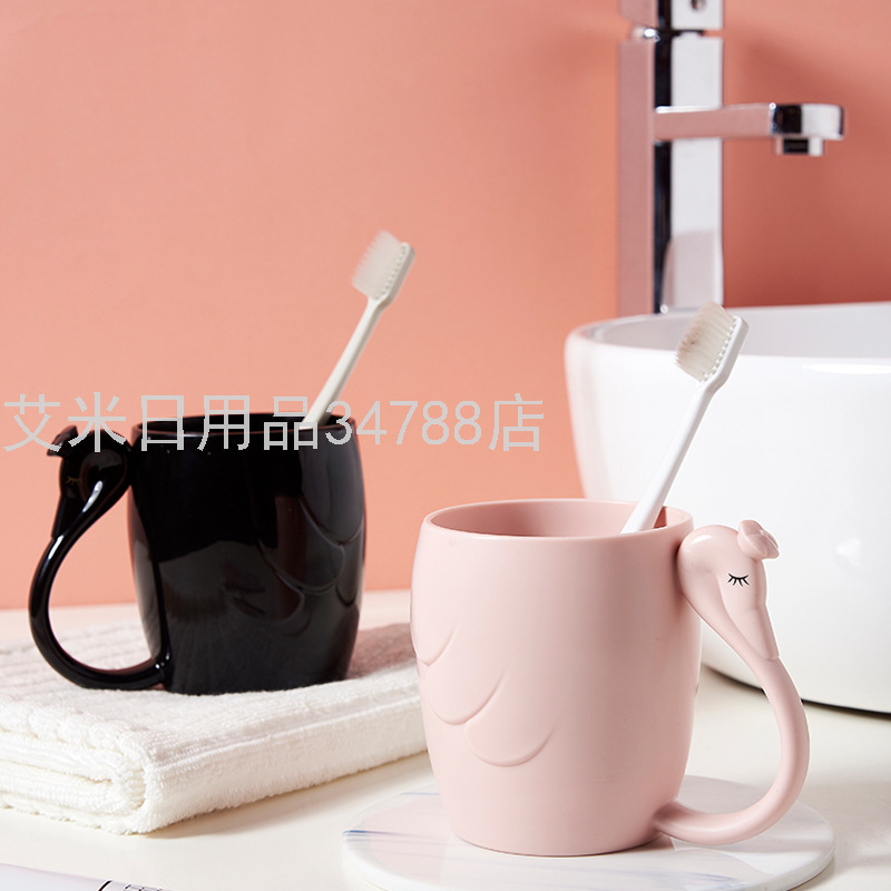 7028 Creative Swan Couple Cup Thickened Plastic Wash Cup Student Man and Woman Cartoon Toothbrush Cup