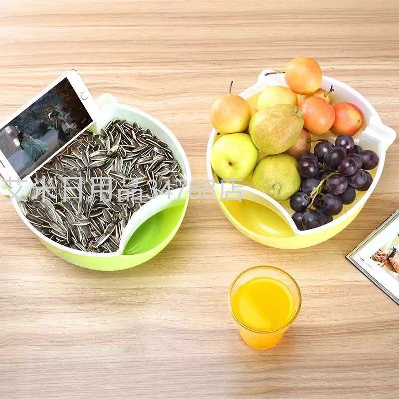 Creative Lazy Fruit Plate Melon Seeds Artifact Detachable Double-Layer Plastic Drain Fruit Plate Fruit Plate Seed Bo 381