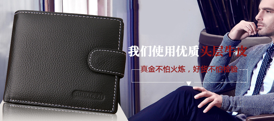 JINBAOLAI men wallet genuine leather short foreign trade vintage zipper buckle wallet new wallet coin pocket