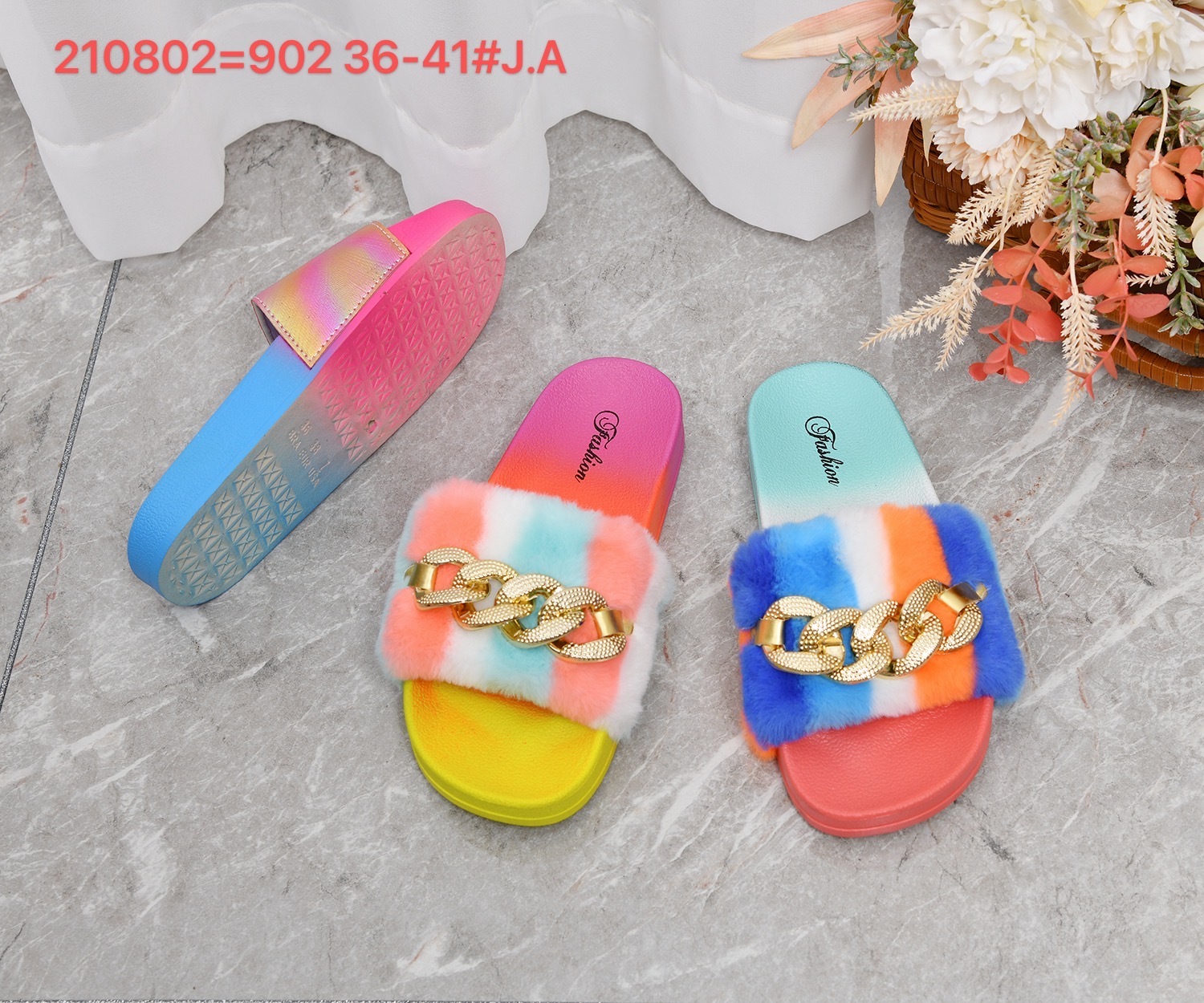 summer metal color matching women's woolen slippers