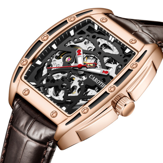 Best-Seller on Douyin Square Men's Automatic Mechanical Watch Hollow Waterproof Belt Watch Men Fashion Trend Watch