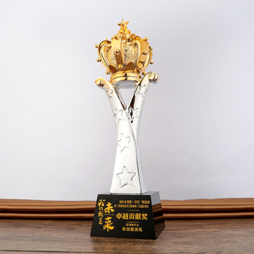 New Style Metal Crystal Trophy Creative Glory Crown Trophy Lettering Staff Award Trophy Free Design