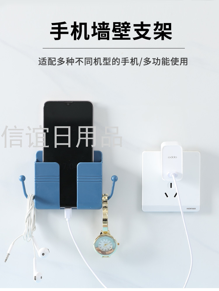 wall-mounted mobile phone holder multi-function punch-free wall debris storage rack adhesive storage box