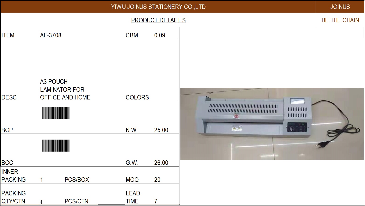 About Product:A3塑封机器 A3 POUCH LAMINATOR FOR OFFICE AND HOME AF-3708