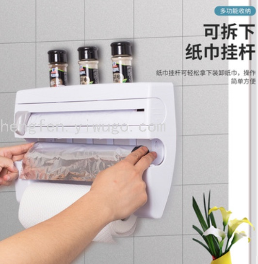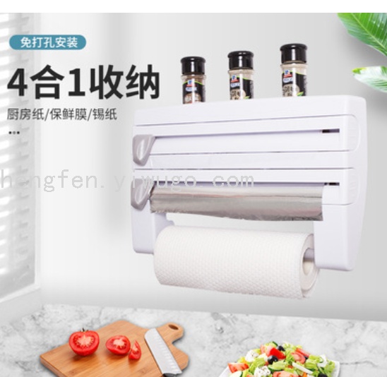Kitchen Plastic Wrap Storage Rack with Cutter Aluminum Foil Barbecue Paper Storage Rack