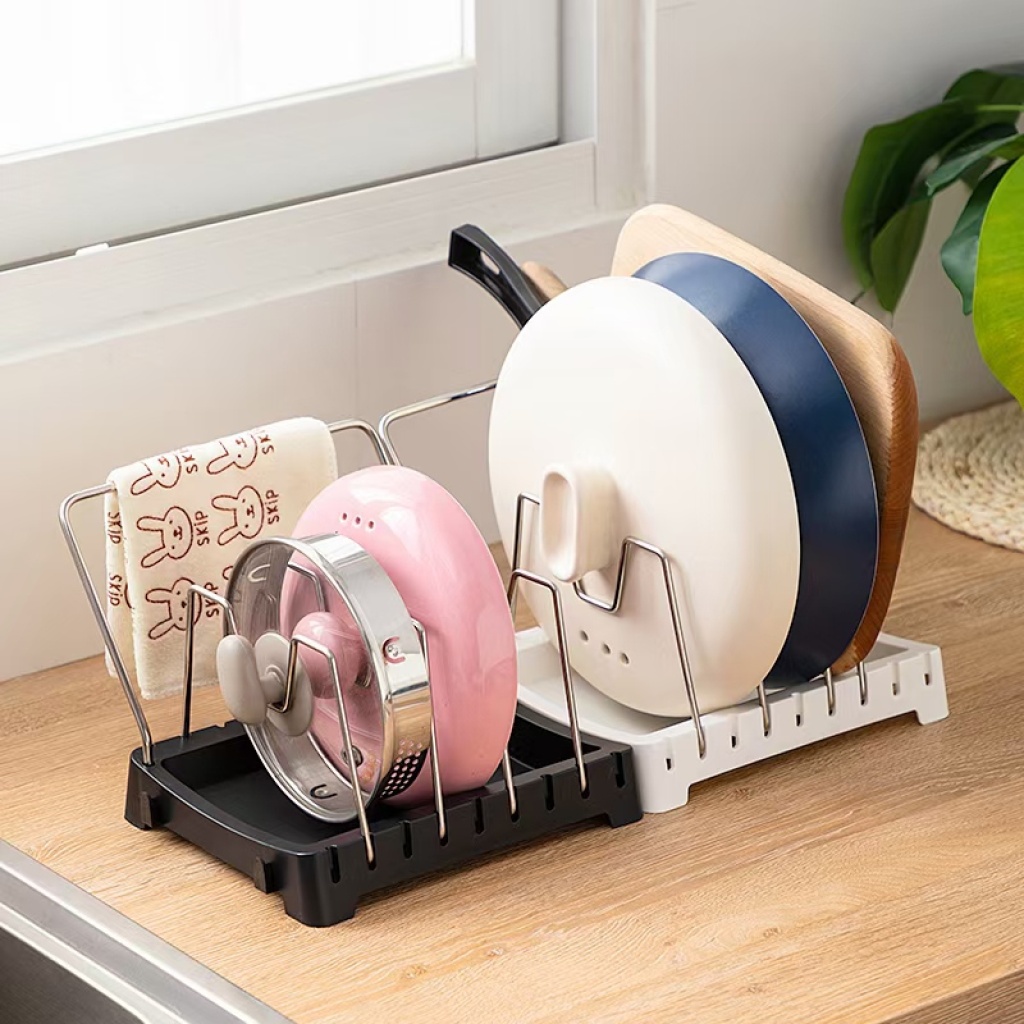 Creative Four-Bracket Spacing Adjustable Cookware Storage Rack Stainless Steel Bracket with Towel Bar Kitchen Rack