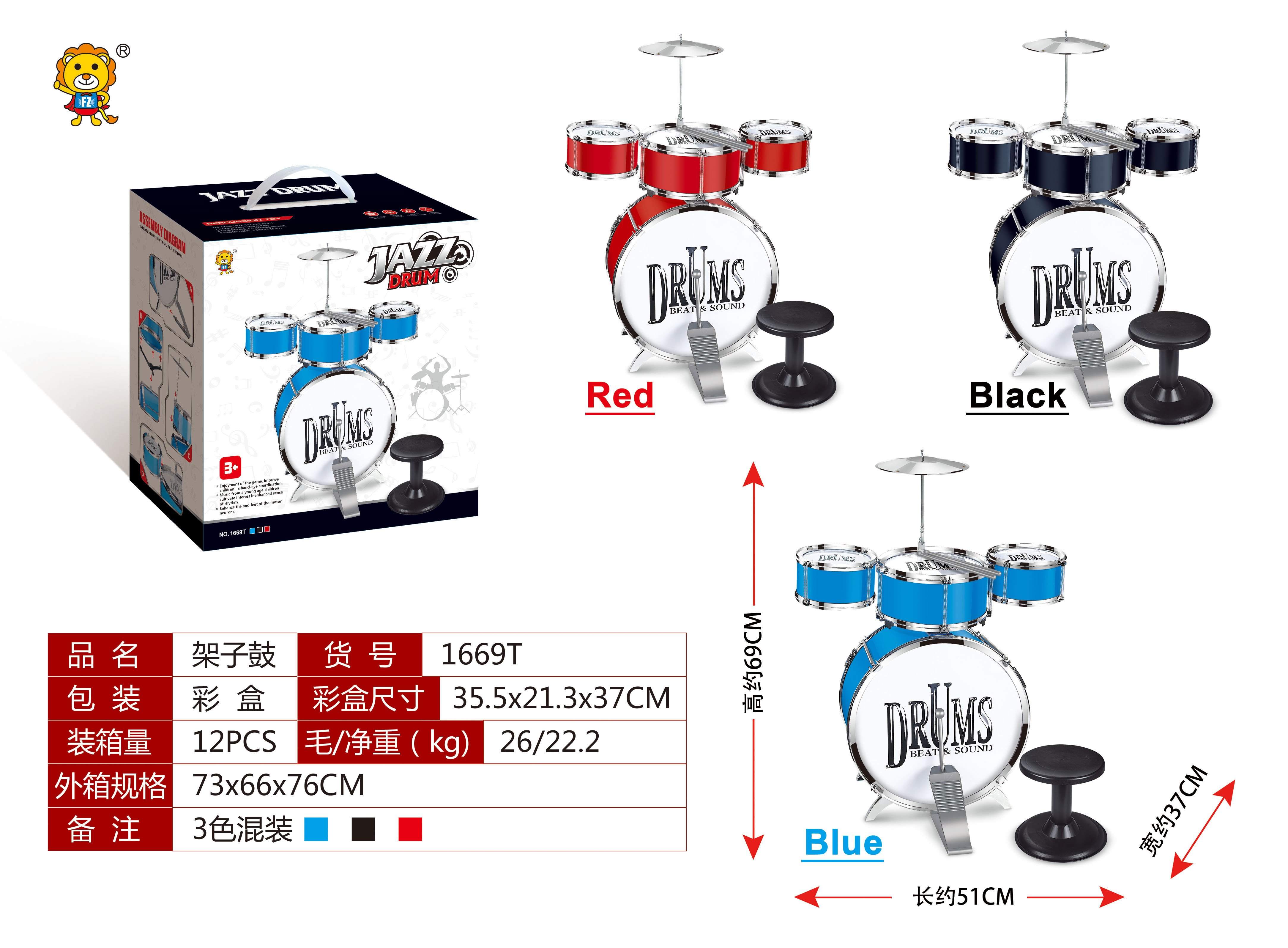 children's simulation musical instrument puzzle toy drum set with stool set 5 drums toy jazz drum