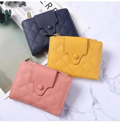 Women's Korean-Style Short Two-Fold Solid Color Simple Rhombus Zipper Student Wallet Multiple Card Slots High-End Coin Purse
