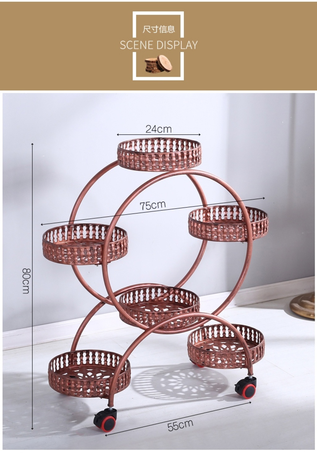 Flower Stand Iron with Wheels Floor Type Scindapsus Basin Frame Living Room Balcony Flower Rack Multi-Layer Indoor Speci