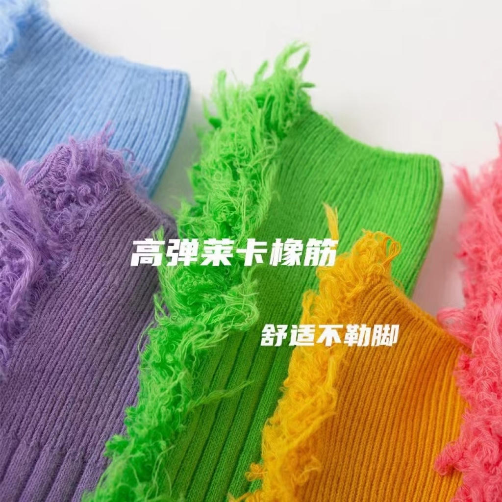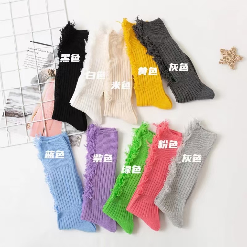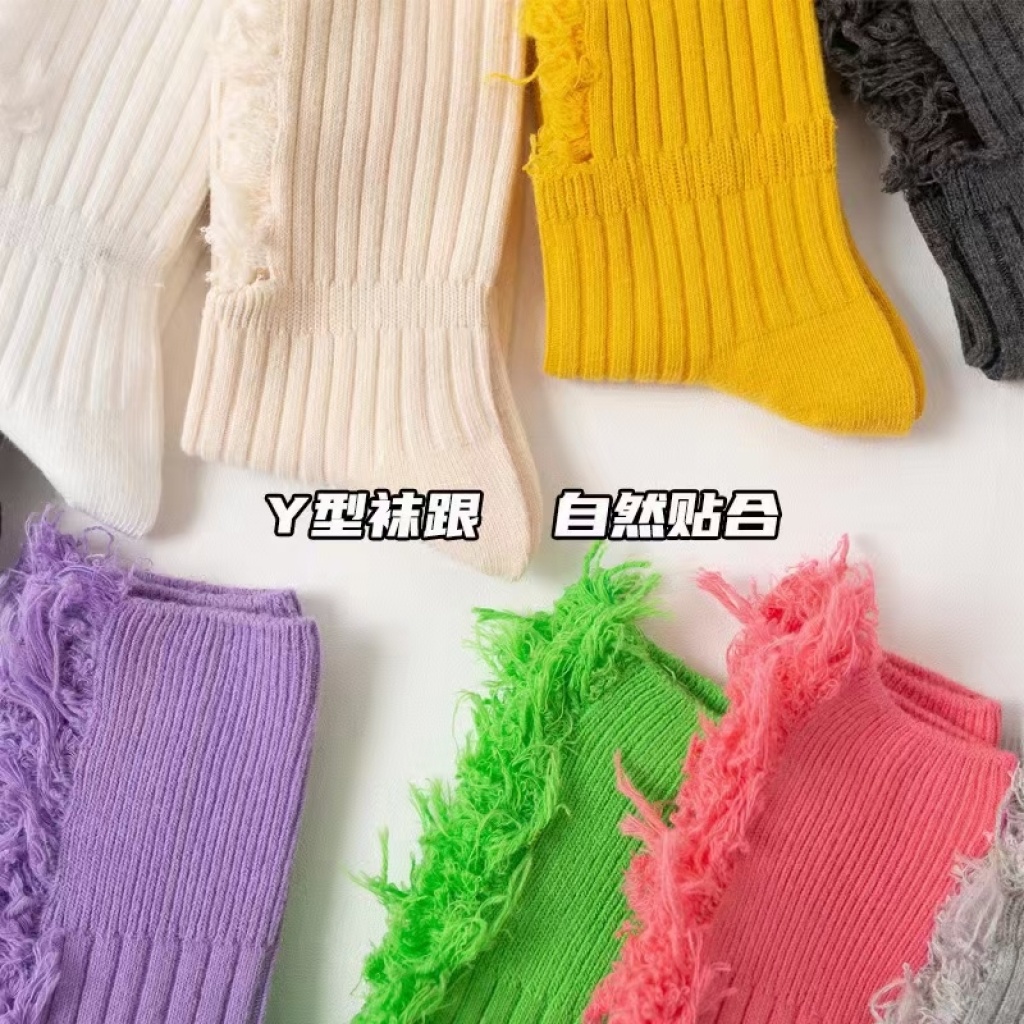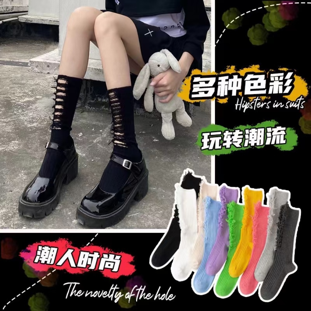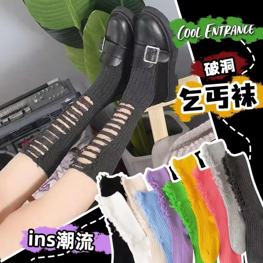 internet celebrity beggar socks ripped women's bunching socks autumn and winter casual cut cotton long women's korean-style jk socks calf socks h