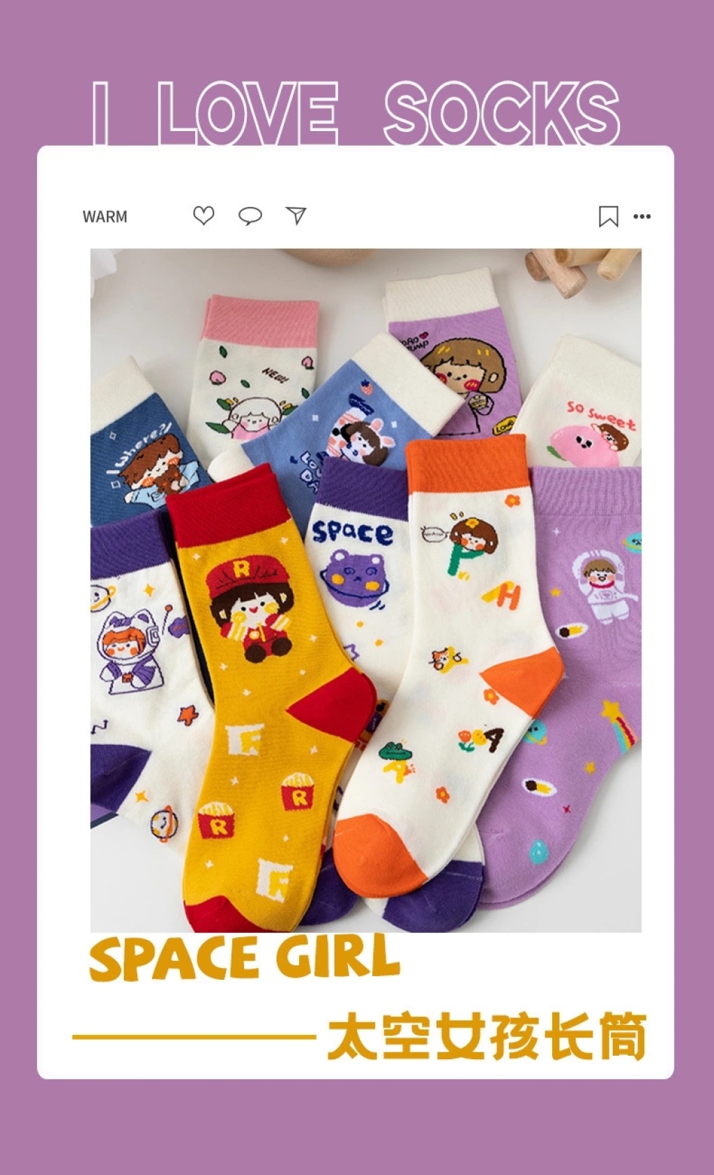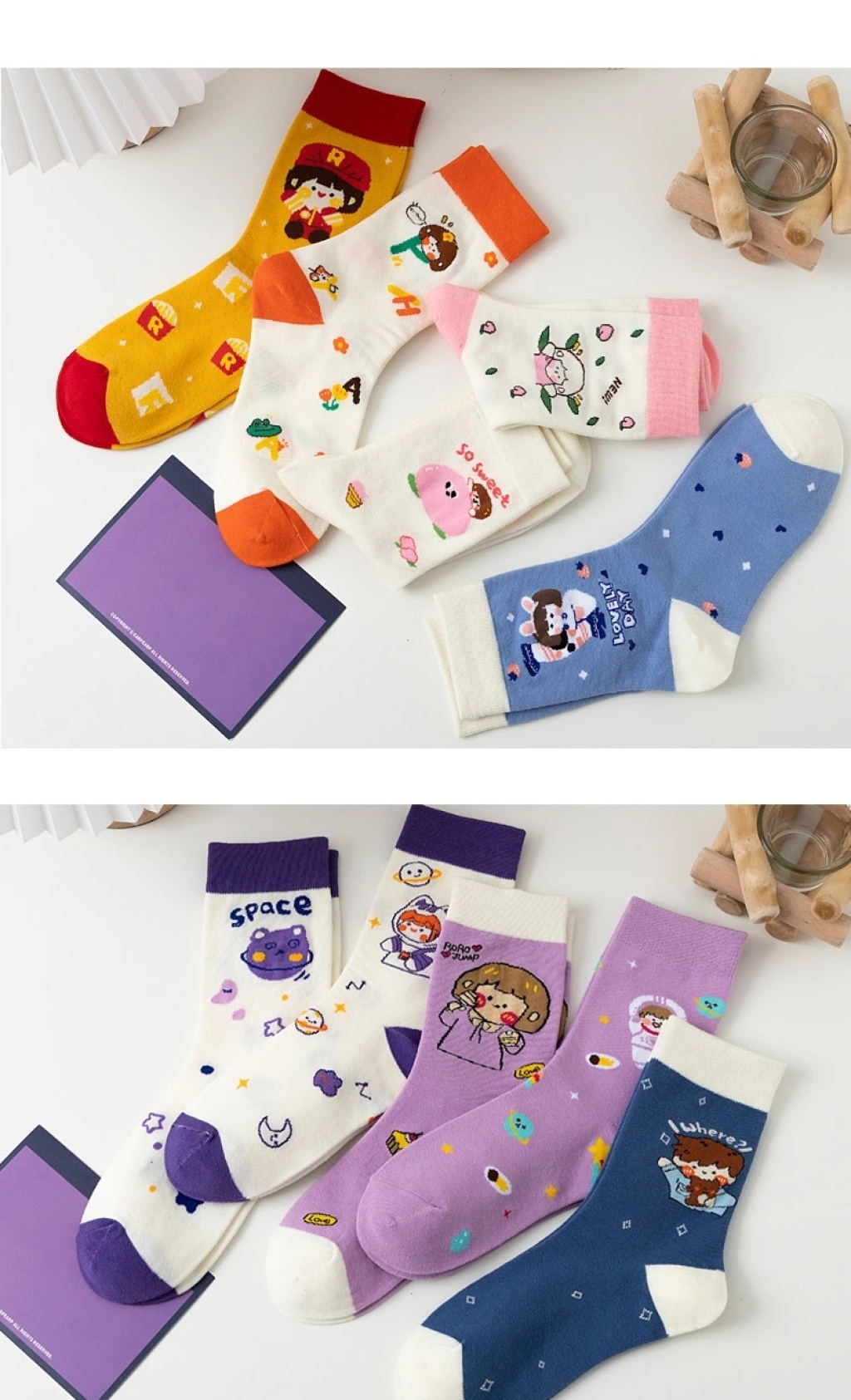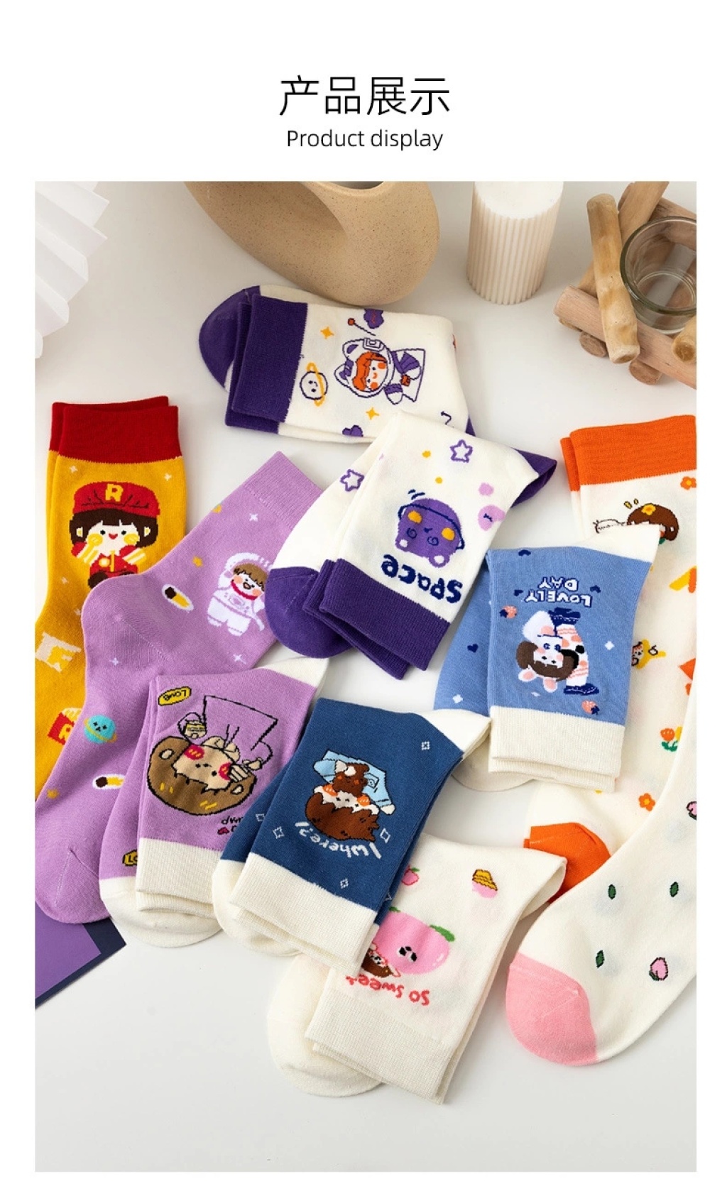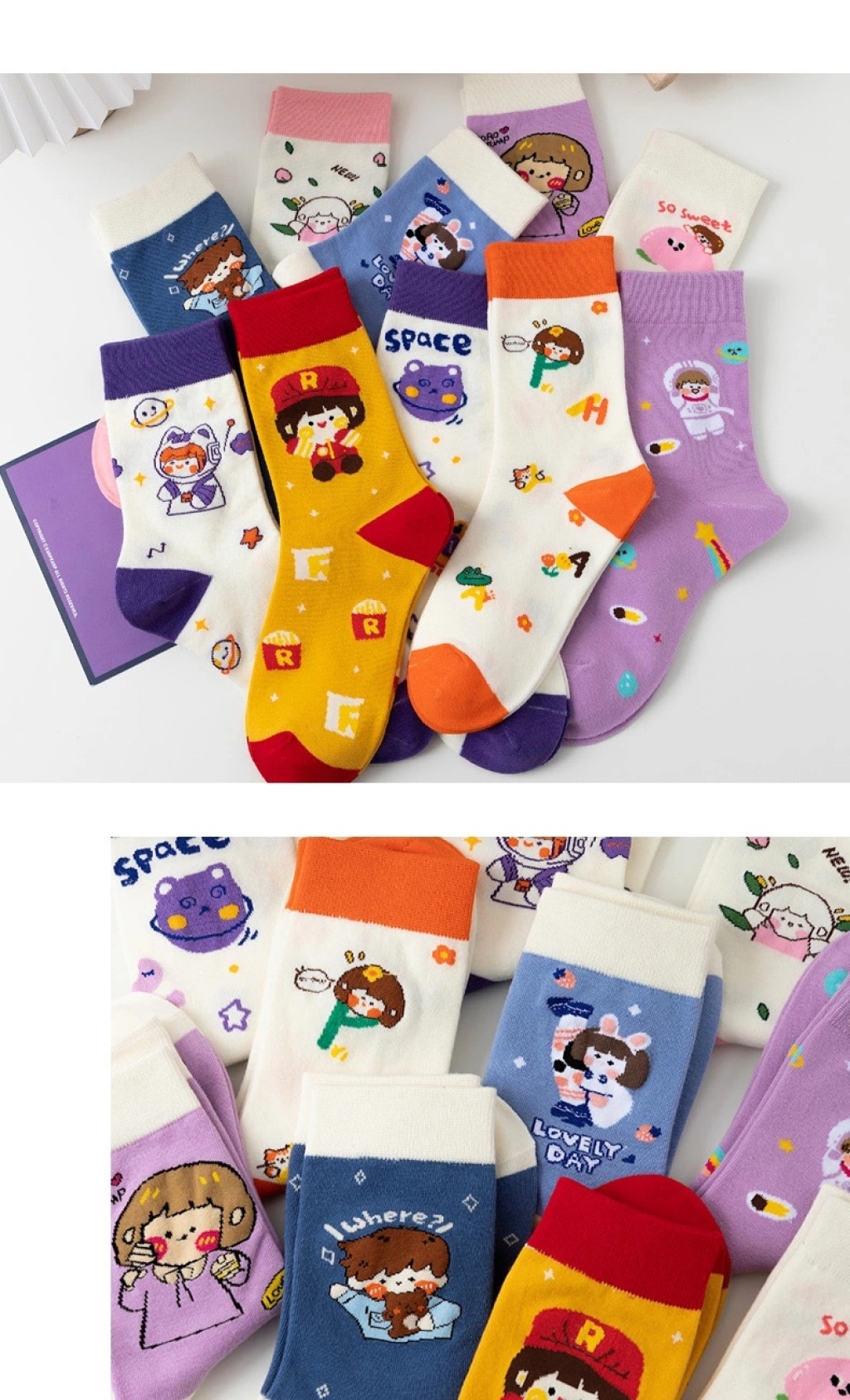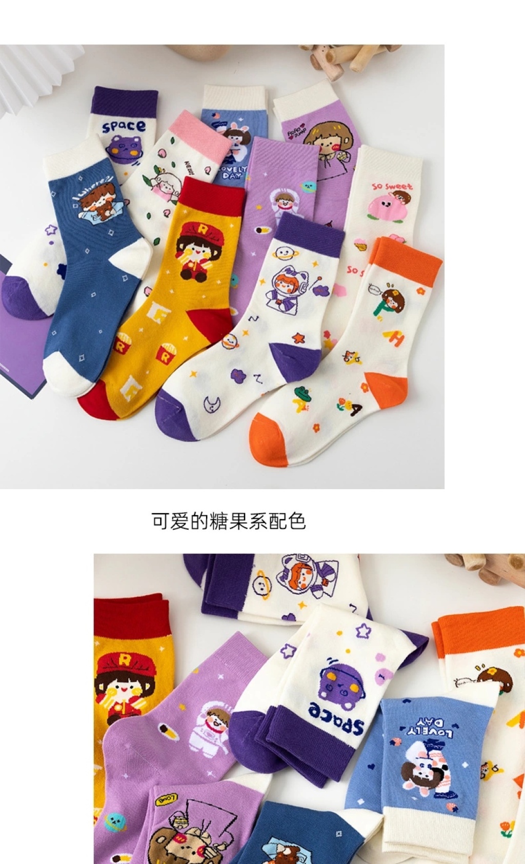 cute socks women's korean-style autumn and winter new mid-calf japanese ins fashion preppy style versatile long tube space cartoon women's socks