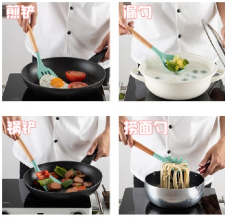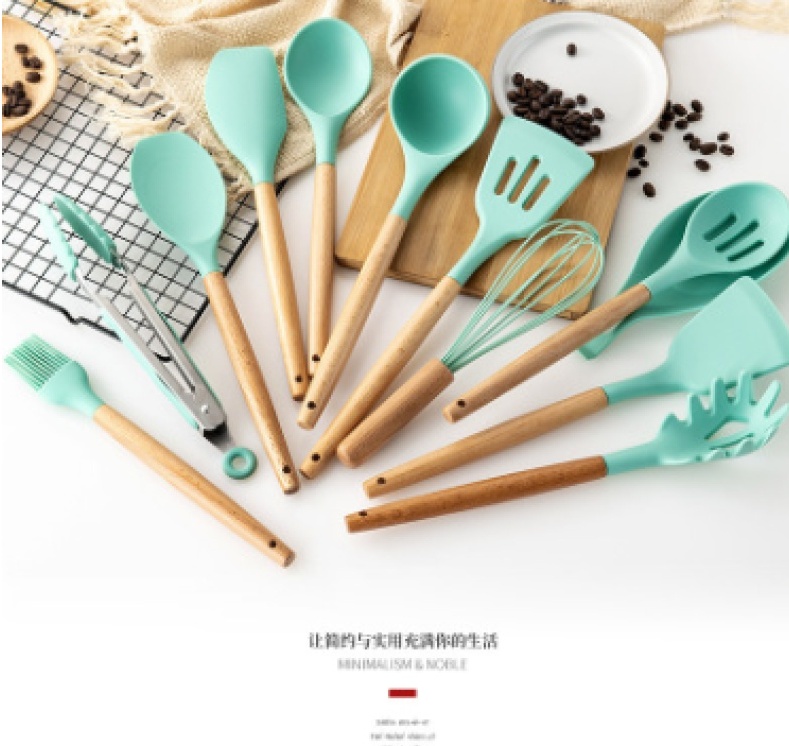 About Product:New color forest green silicone kitchenware 12-piece set