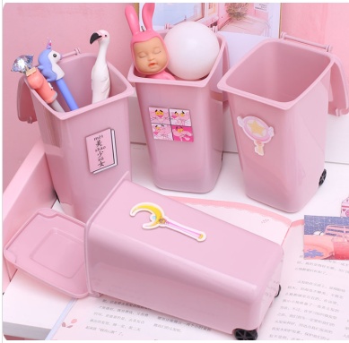 About Product:Pink Pen Holder Desktop Storage Pen Holder Plastic Bucket with Lid