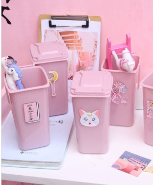 Pink Pen Holder Desktop Storage Pen Holder Plastic Bucket with Lid