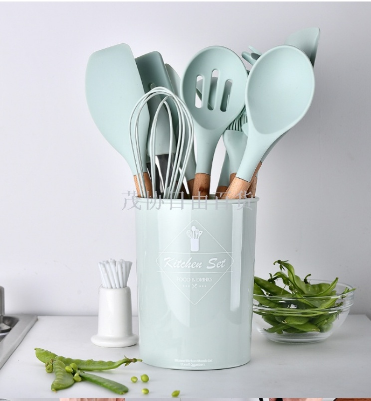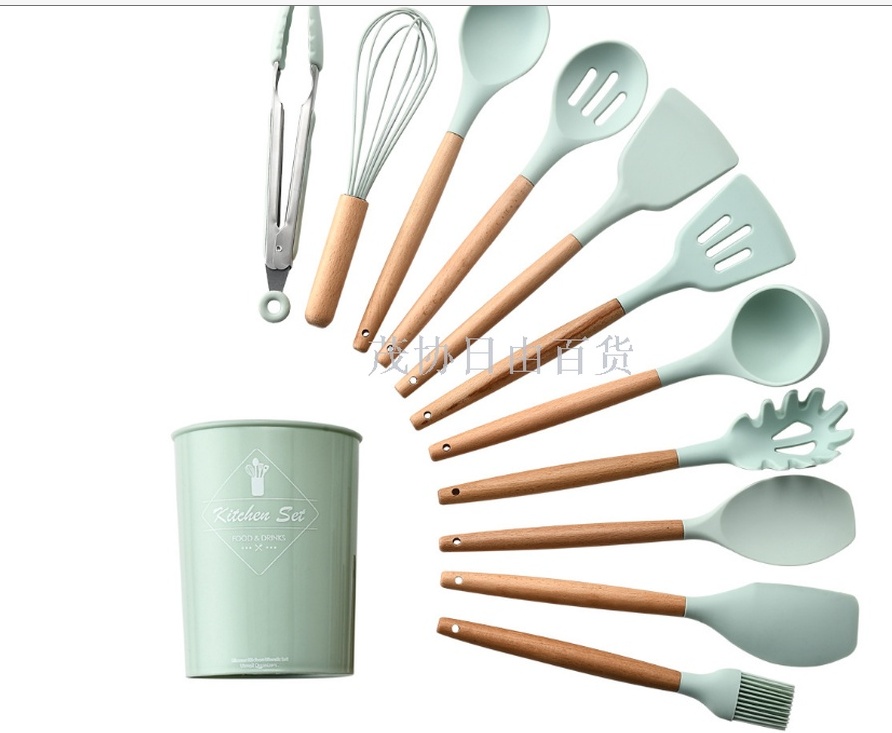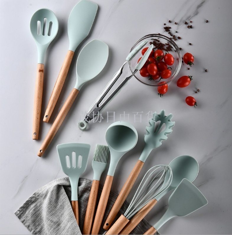 About Product:11-Piece Silicone Kitchenware Set with Wooden Handle