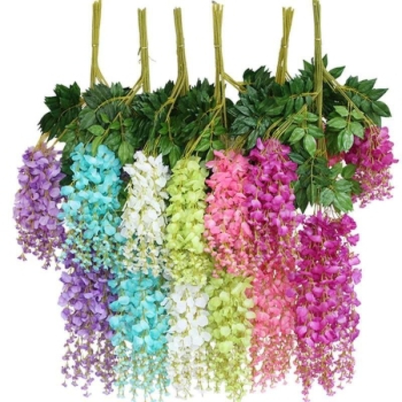 Artificial Wisteria Bean Flower String Violet Plastic Silk Flower Decorative Vine Plant Ceiling Flower Fake Flower for Wedding Rattan