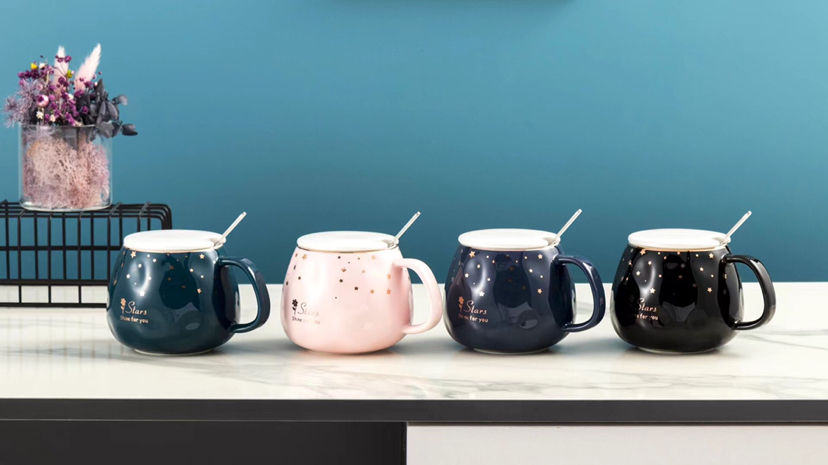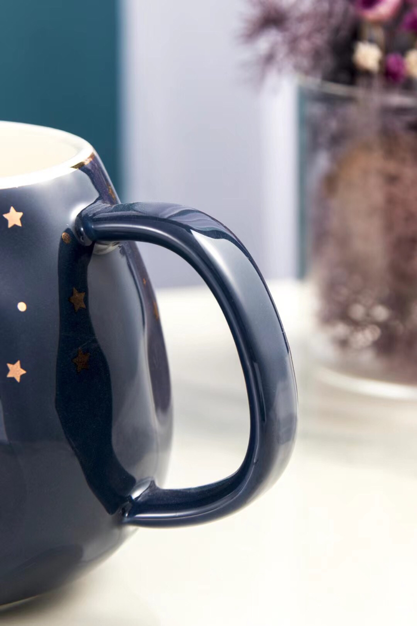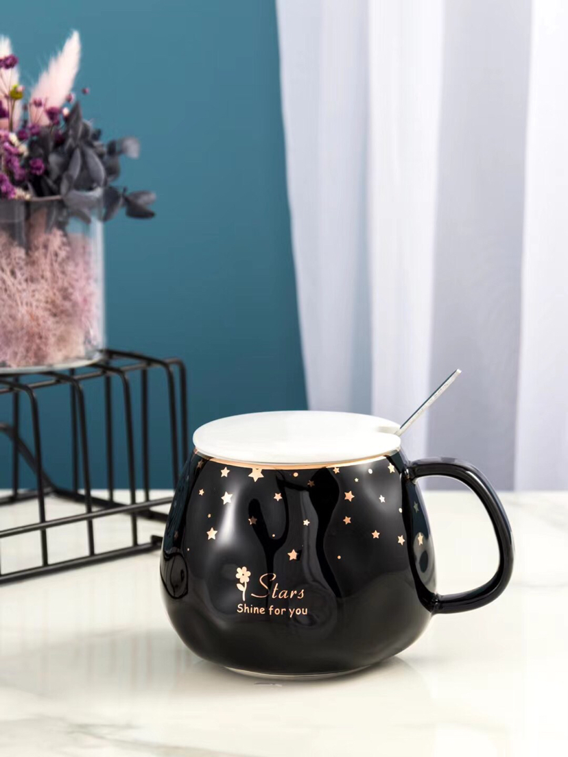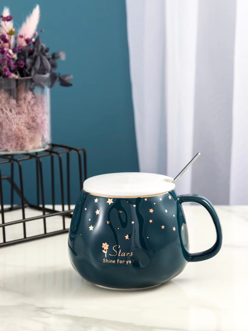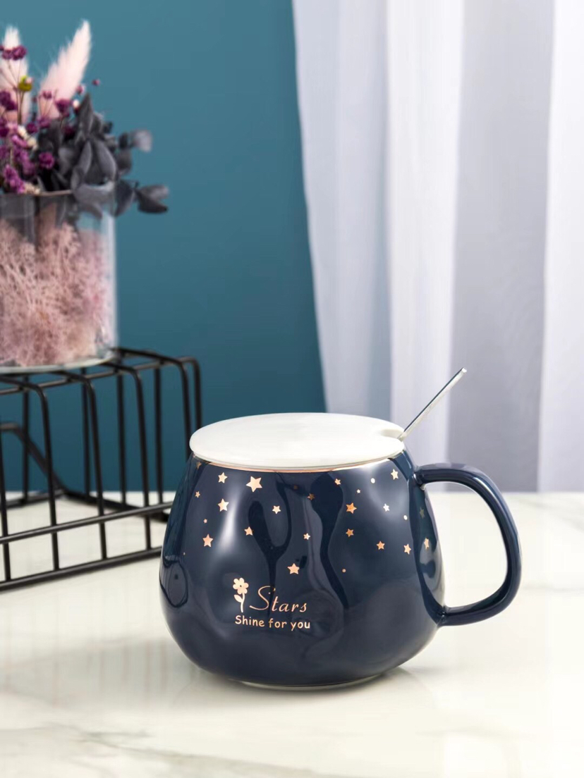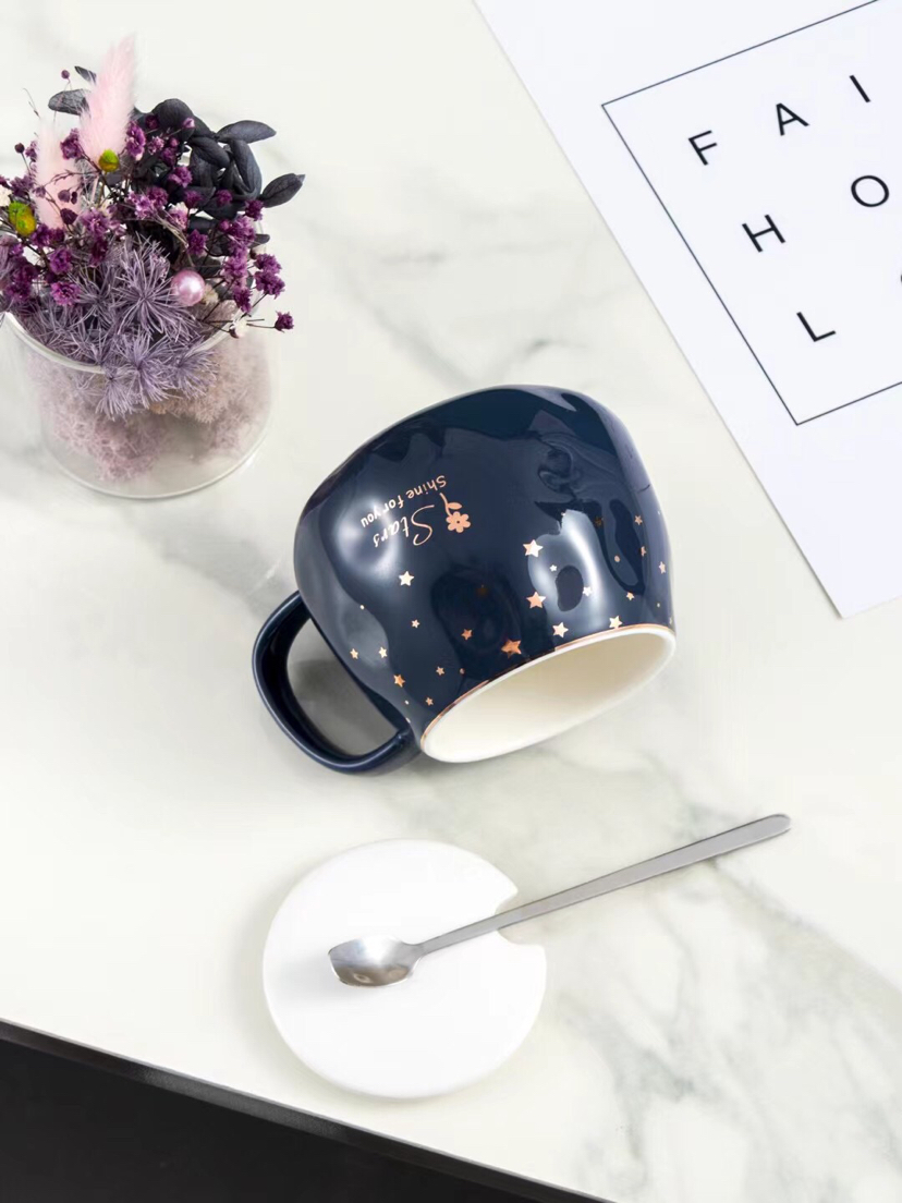 Hot Sale Starry Sky Ceramic Cup Mug with Cover with Spoon Coffee Cup Water Cup Office Cup Gold Line Creative Cup