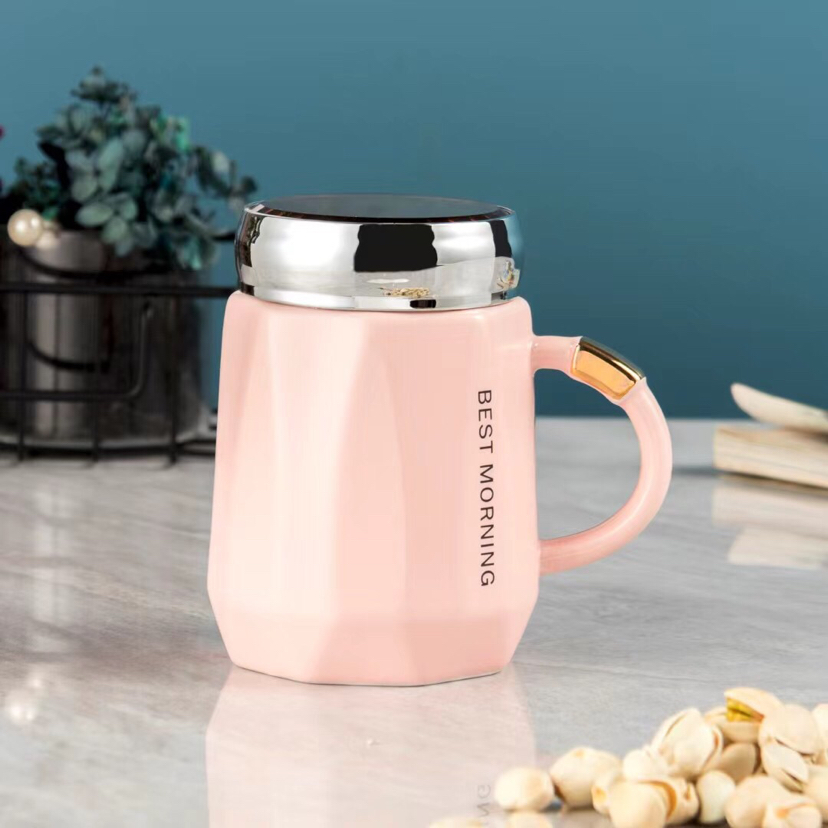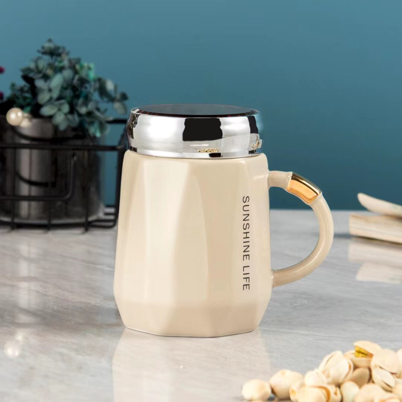 Hot Sale Sealing Cover Ceramic Cup Mug Office Cup Small Fresh Water Cup Gold Mirror Cup