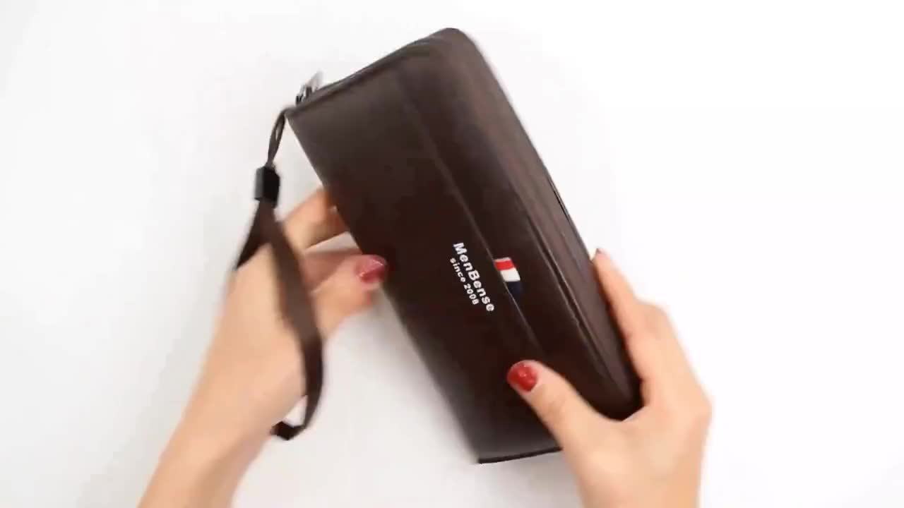 Men's Wallet Business Lychee Pattern Multifunctional Zipper Clutch Wallet Single Pull Bag