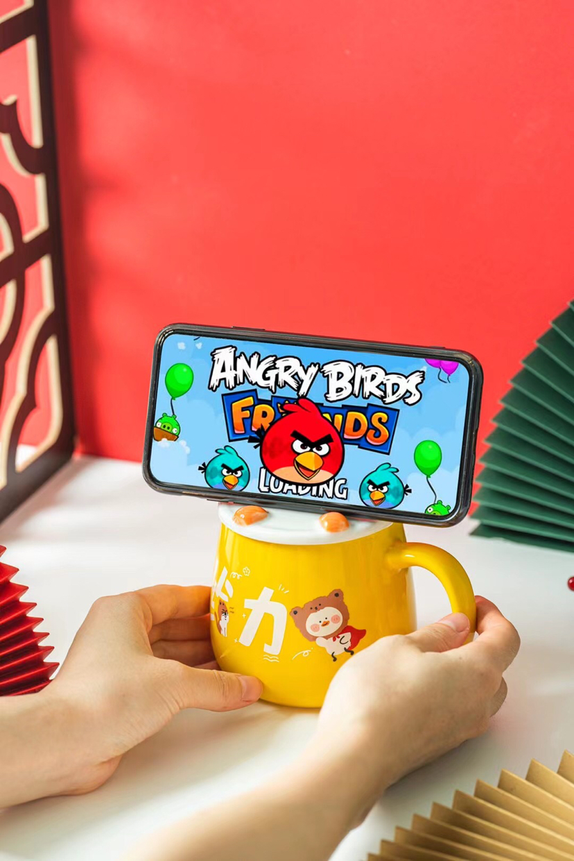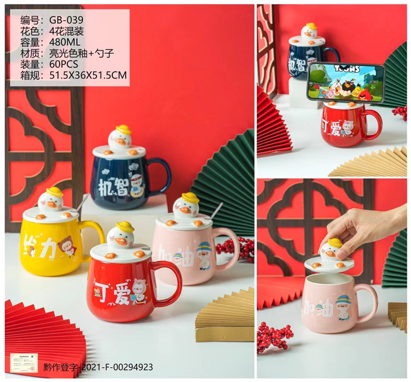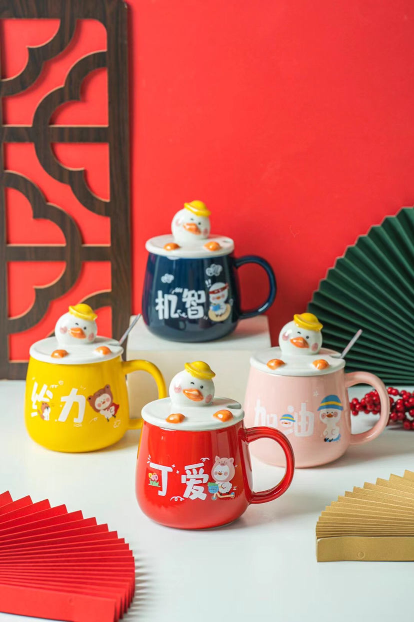 Hot Sale Internet Hot Text Ceramic Cup Cute Creative Water Cup Cartoon Mug with Cover with Spoon Coffee Cup