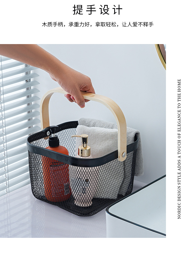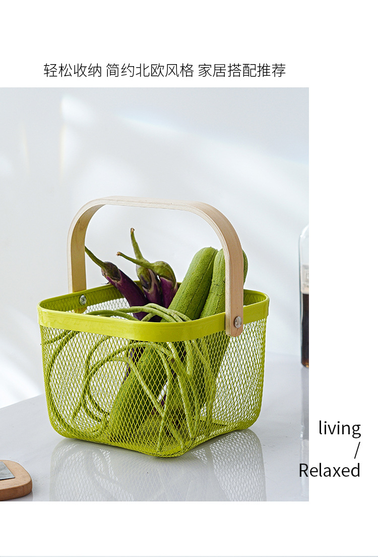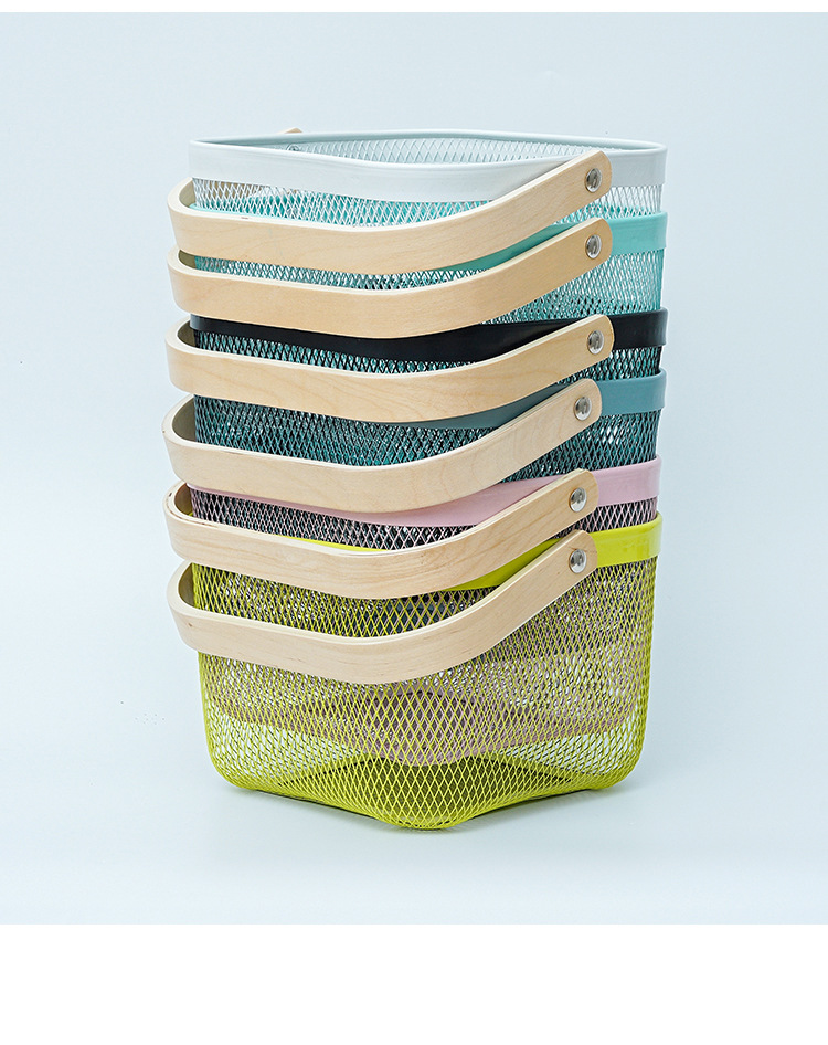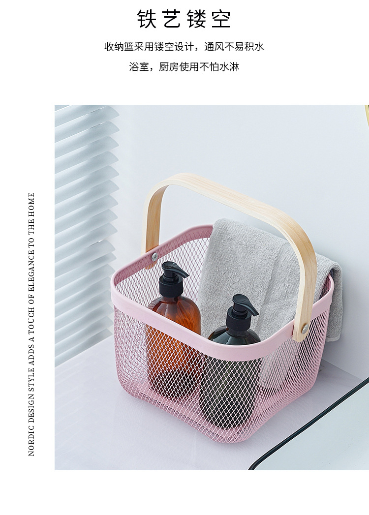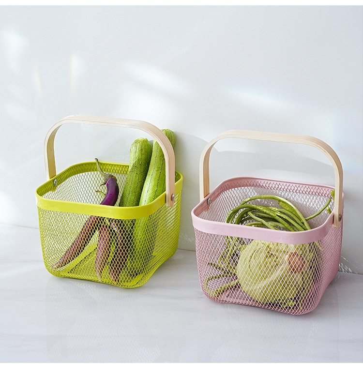 Nordic Portable Household Metal Storage Basket Fruit Snacks Sundries Bathroom Macaron Color Storage Basket Shopping Basket