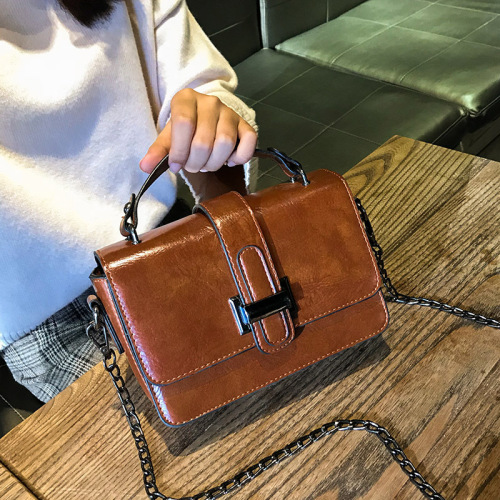 Women's Bag 2021 New Autumn and Winter Internet Celebrity Shoulder Crossbody Bag Retro Chain Small Square Bag All-Match Oil Wax Leather Women's Bag