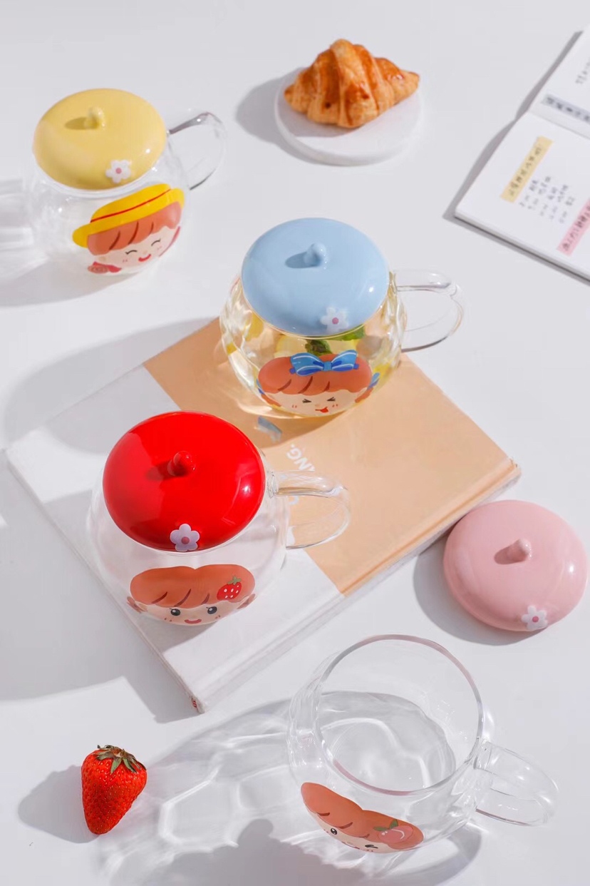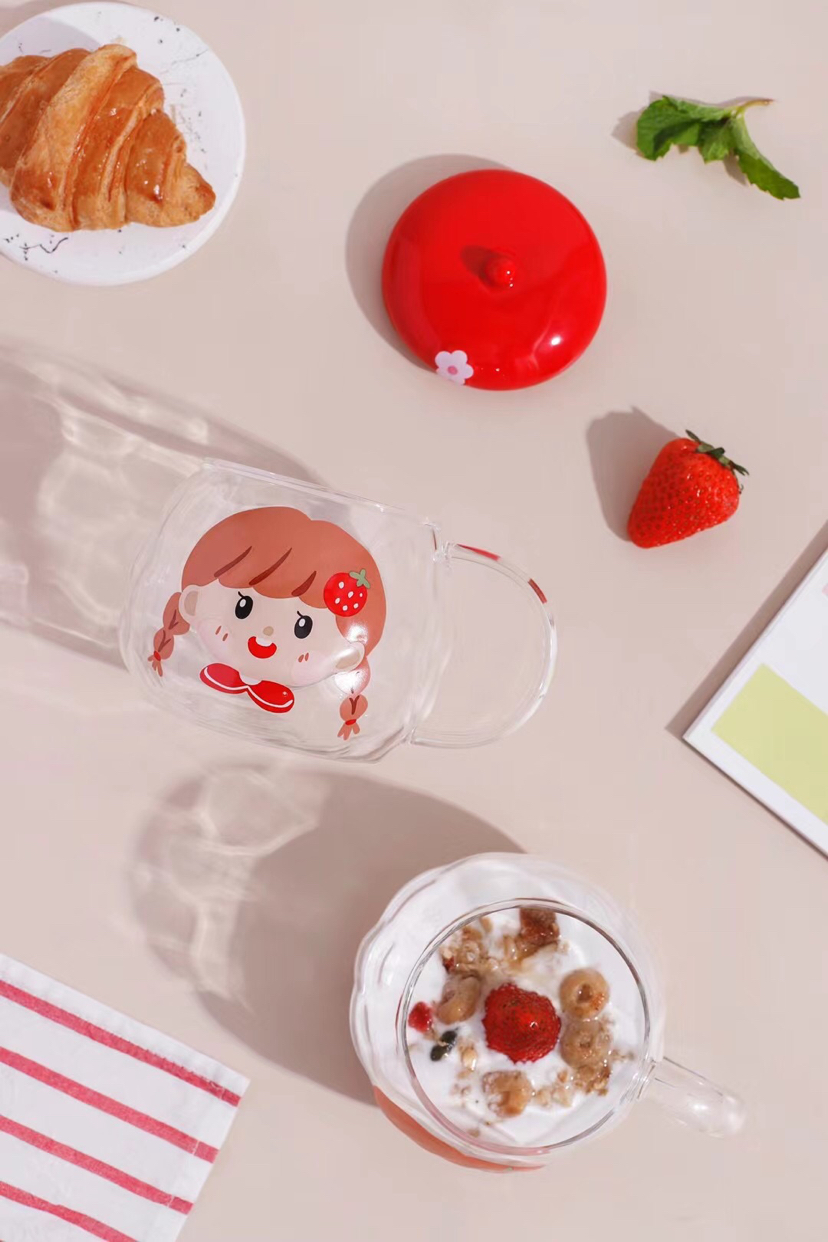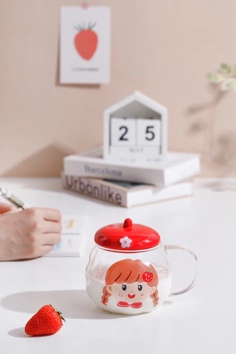 Hot Sale Cartoon Glass Cup Creative Glass with Cover with Spoon Coffee Cup Mug Milk Cup