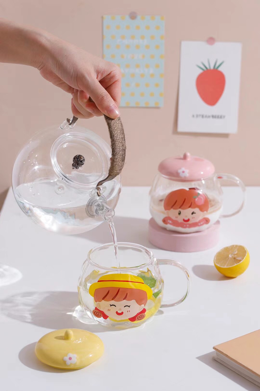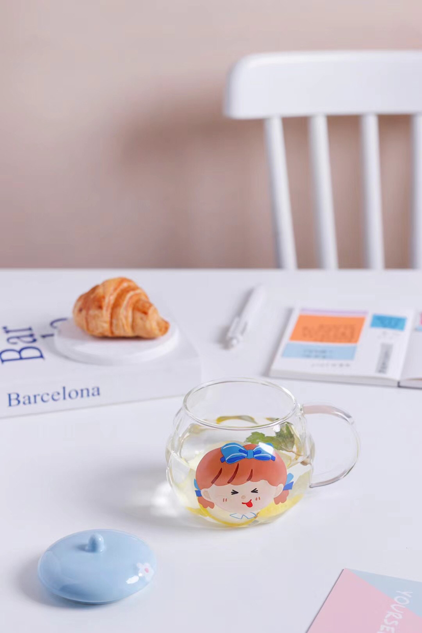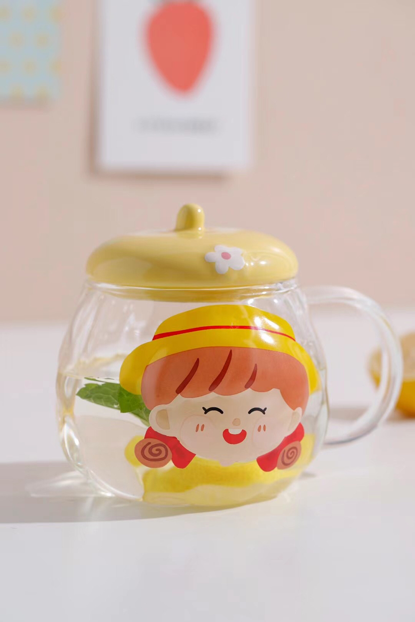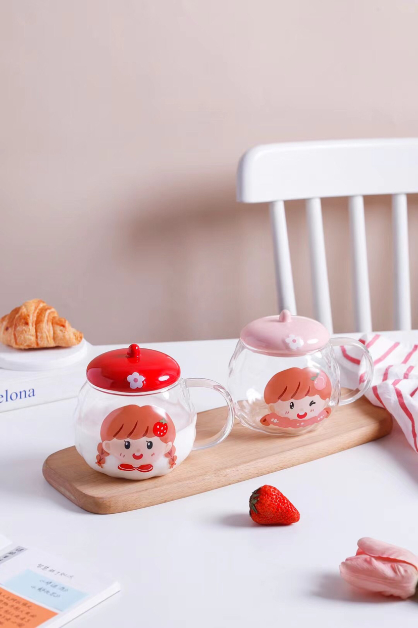 Hot Sale Cartoon Glass Cup Creative Glass with Cover with Spoon Coffee Cup Mug Milk Cup