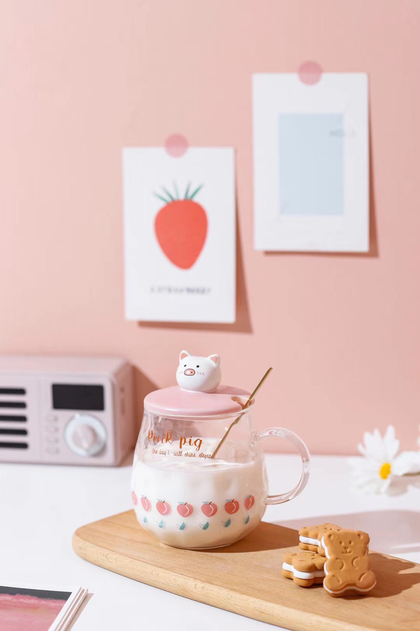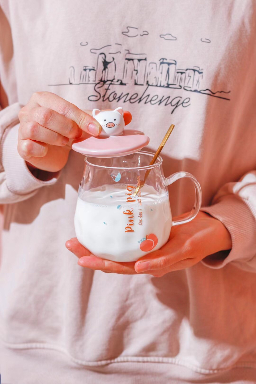 Hot Selling Cartoon Ceramic Cup Cat Doll Hairstyle Creative Glass with Cover with Spoon Coffee Cup Couple's Cups