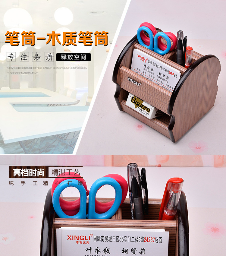[factory direct sales] supply round multi-function rotating business wooden pen holder office pen holder home storage