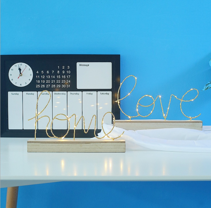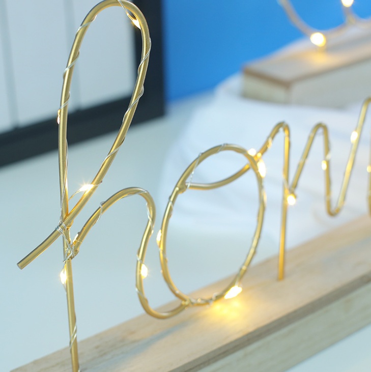 About Product:Wrought Iron Wood Bottom Letter Small Night Lamp