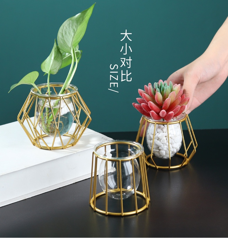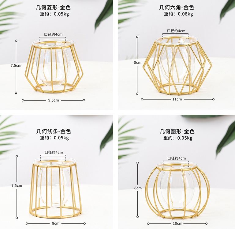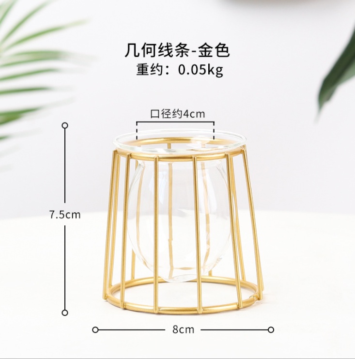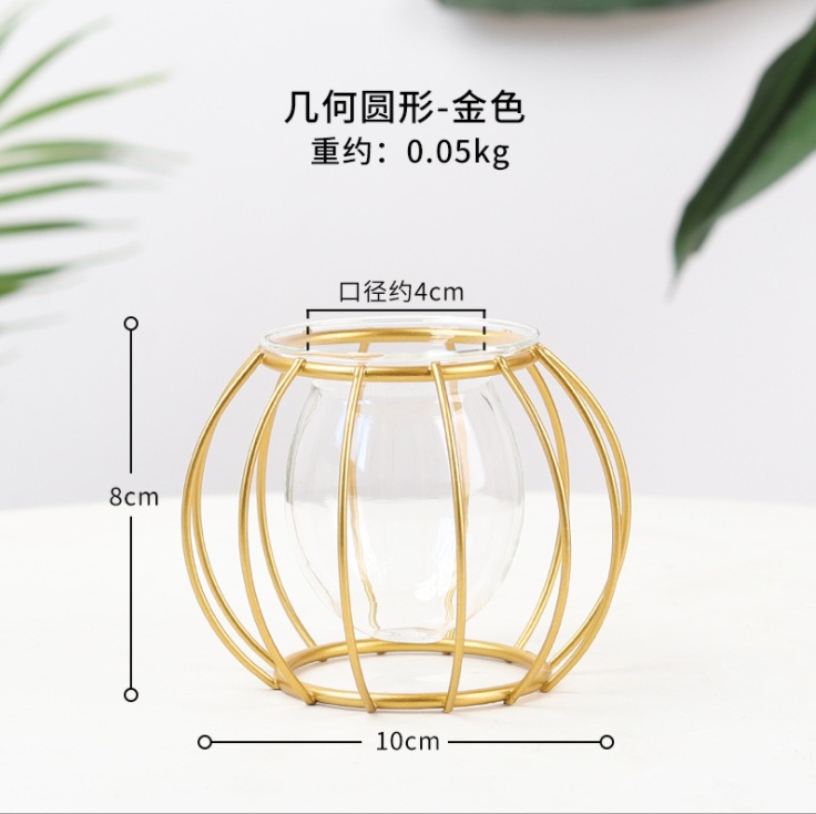 About Product:Wrought Iron Flower Stand Hydroponic Container Glass Vase Decoration