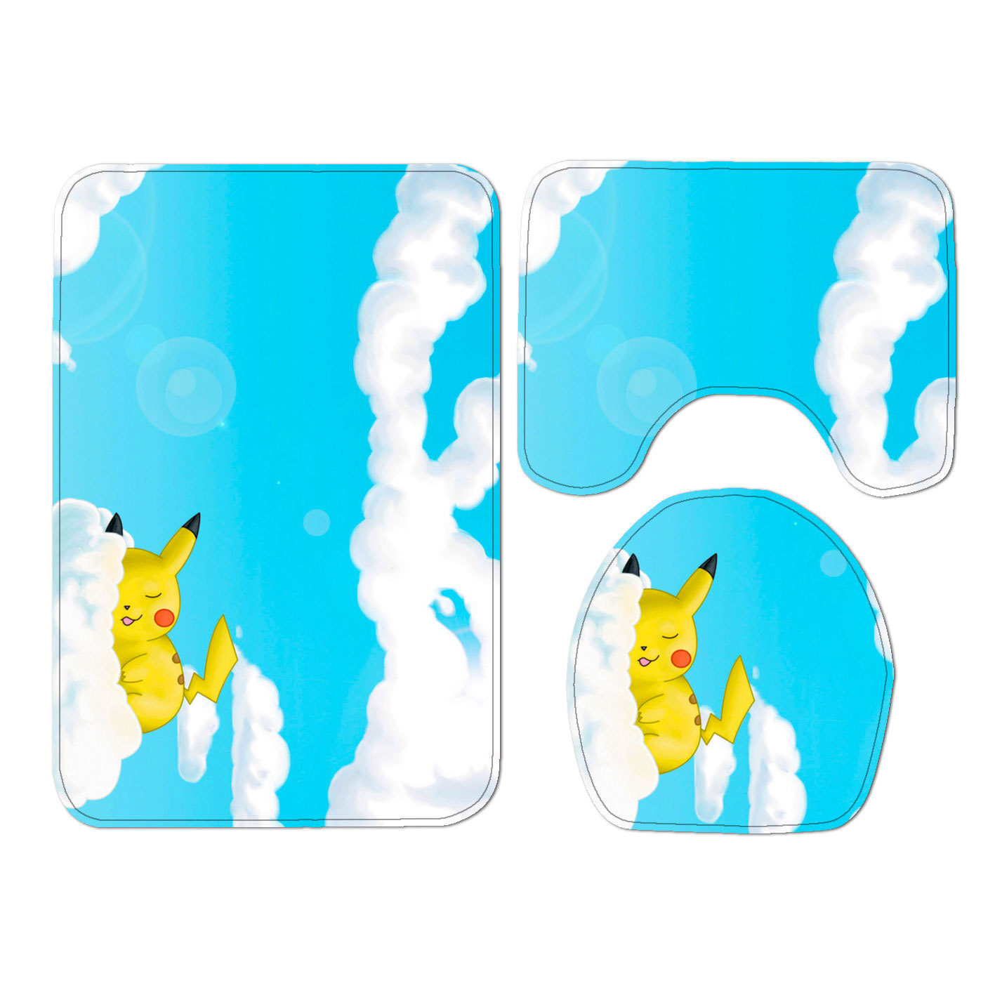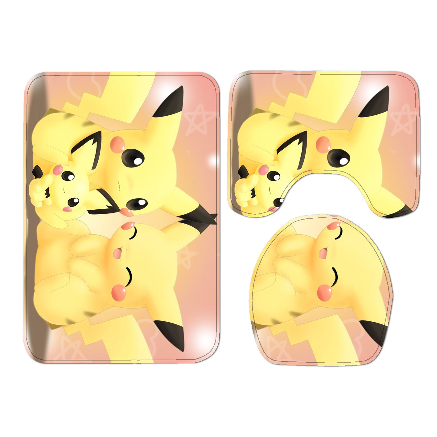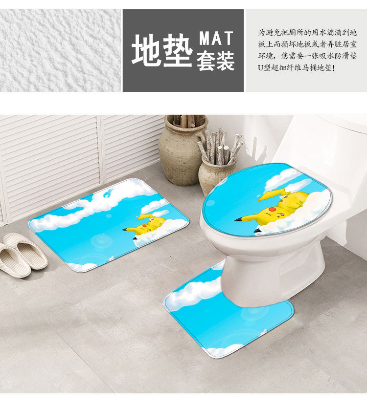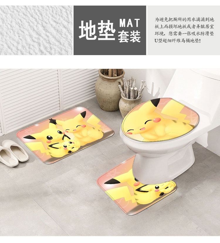 Japanese-Style Cartoon Lightning Pikachu Toilet Floor Mat Non-Slip Mat Foot Pad Toilet Three-Piece Set Custom One Piece Dropshipping