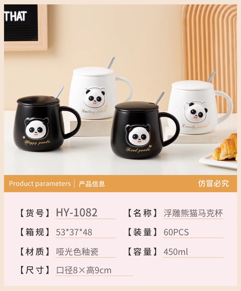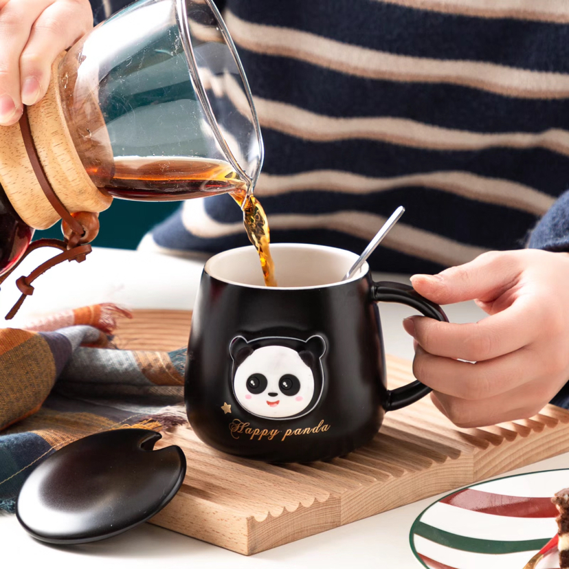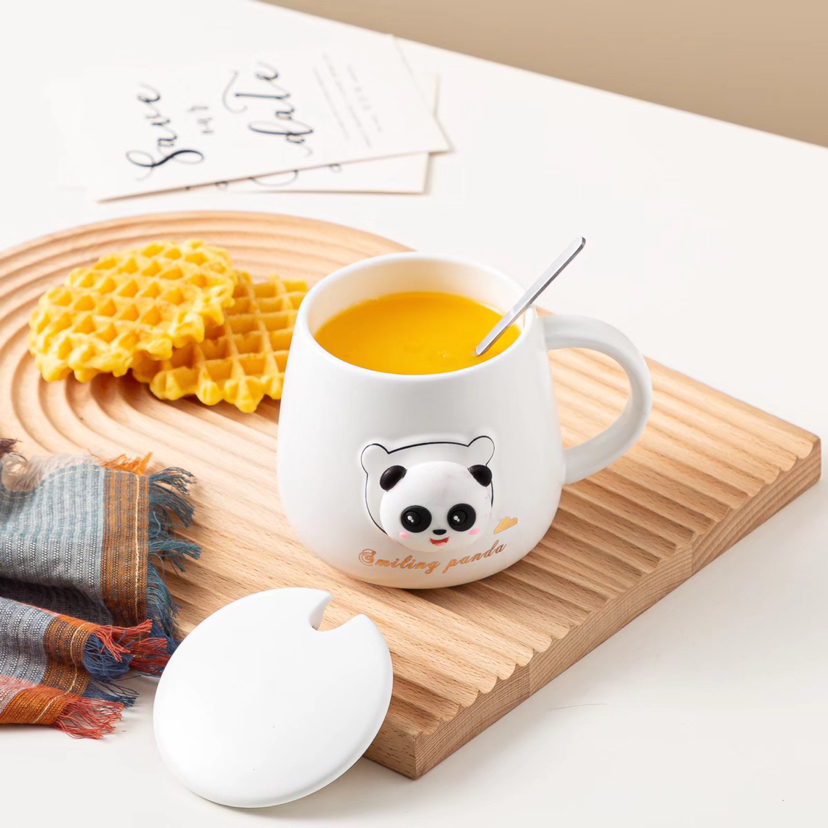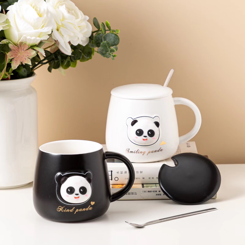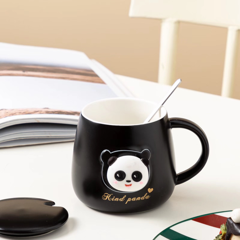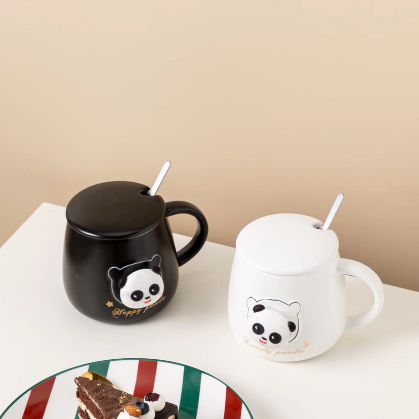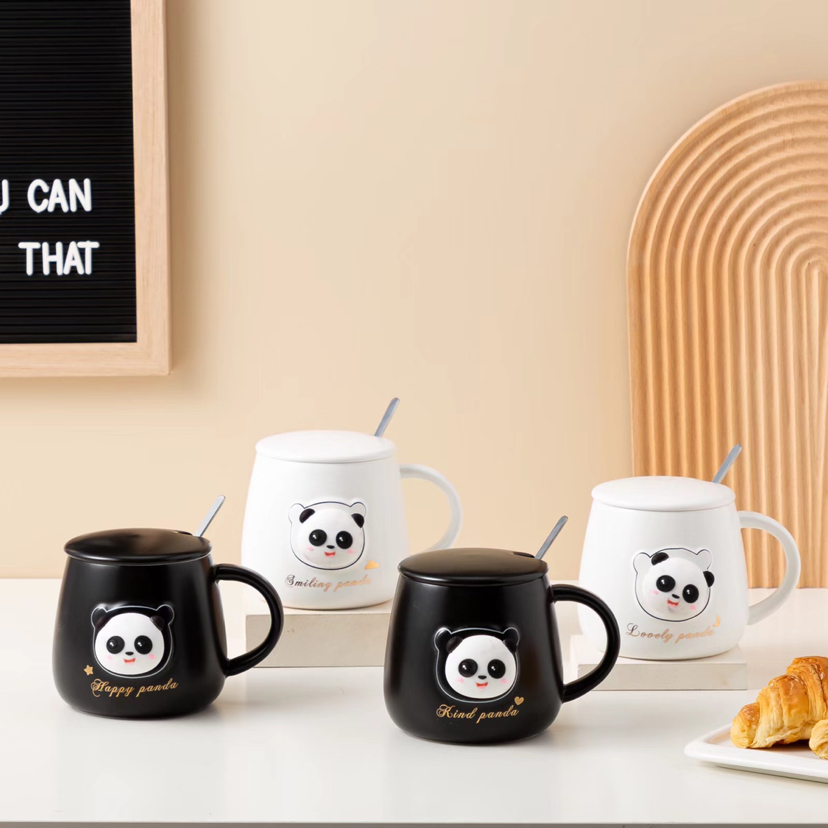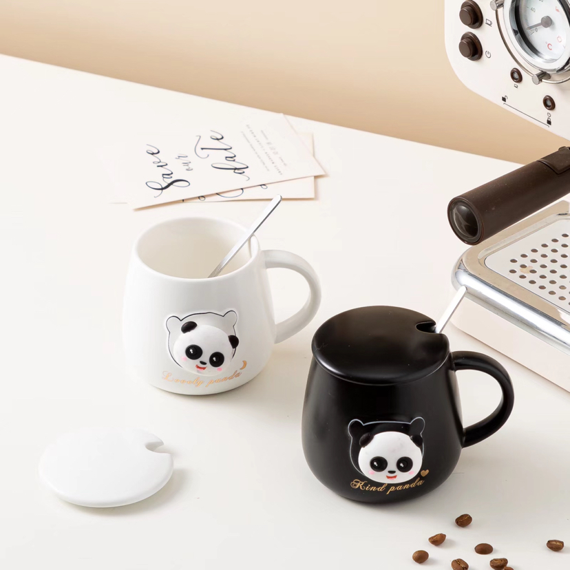 Hot Selling Cartoon Black and White Panda Ceramic Cup with Cover with Spoon Coffee Cup Creative Mug Cute Water Glass Gift