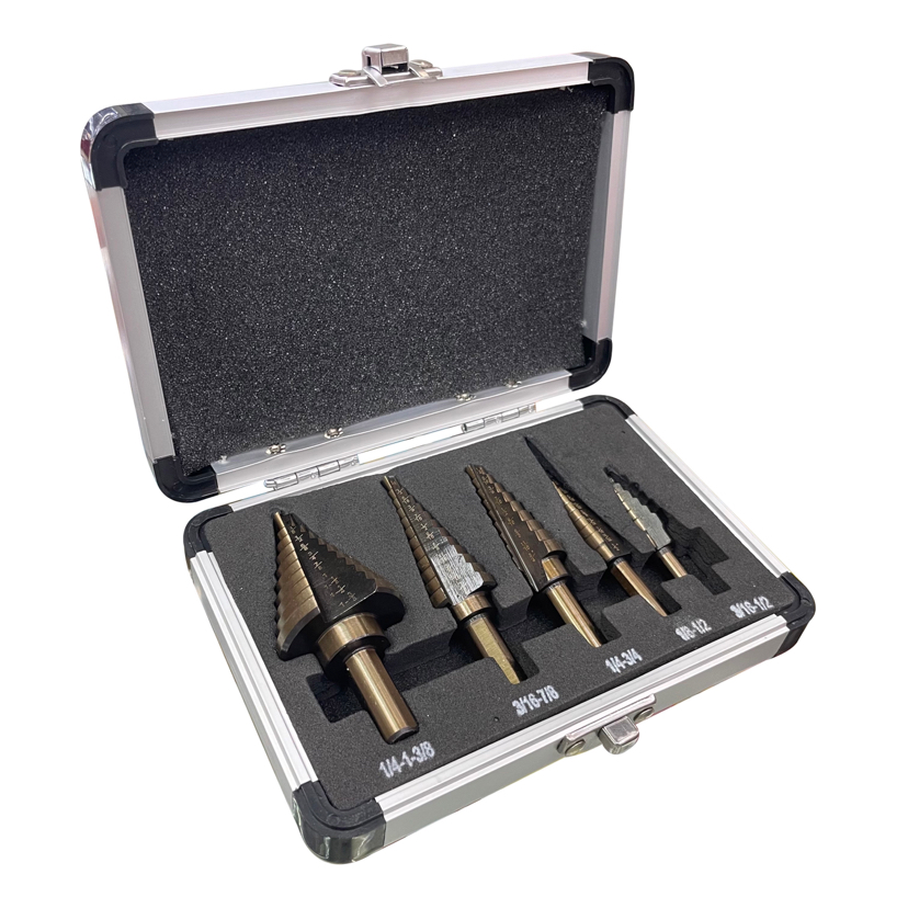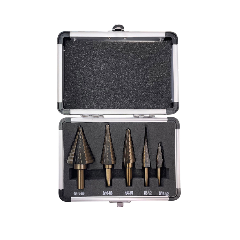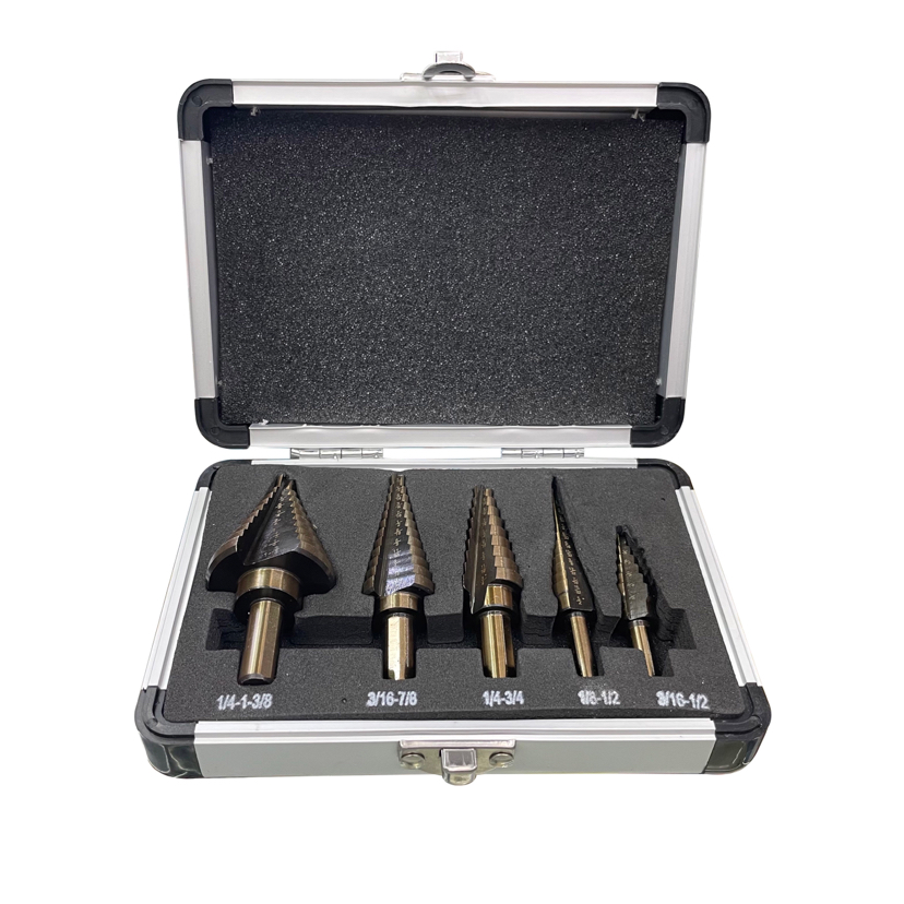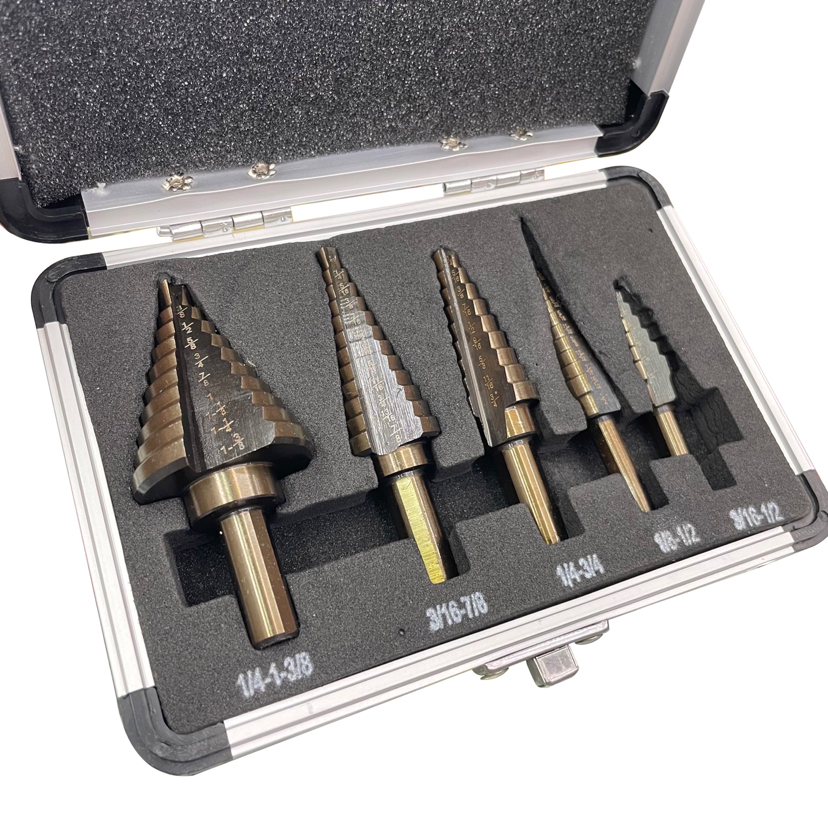5Pc Aluminum Boxed Ladder Drill Bit Bearing Steel 6542 M35 M42 Pagoda Drilling Bit Set Hole Opening Wide Hole Device